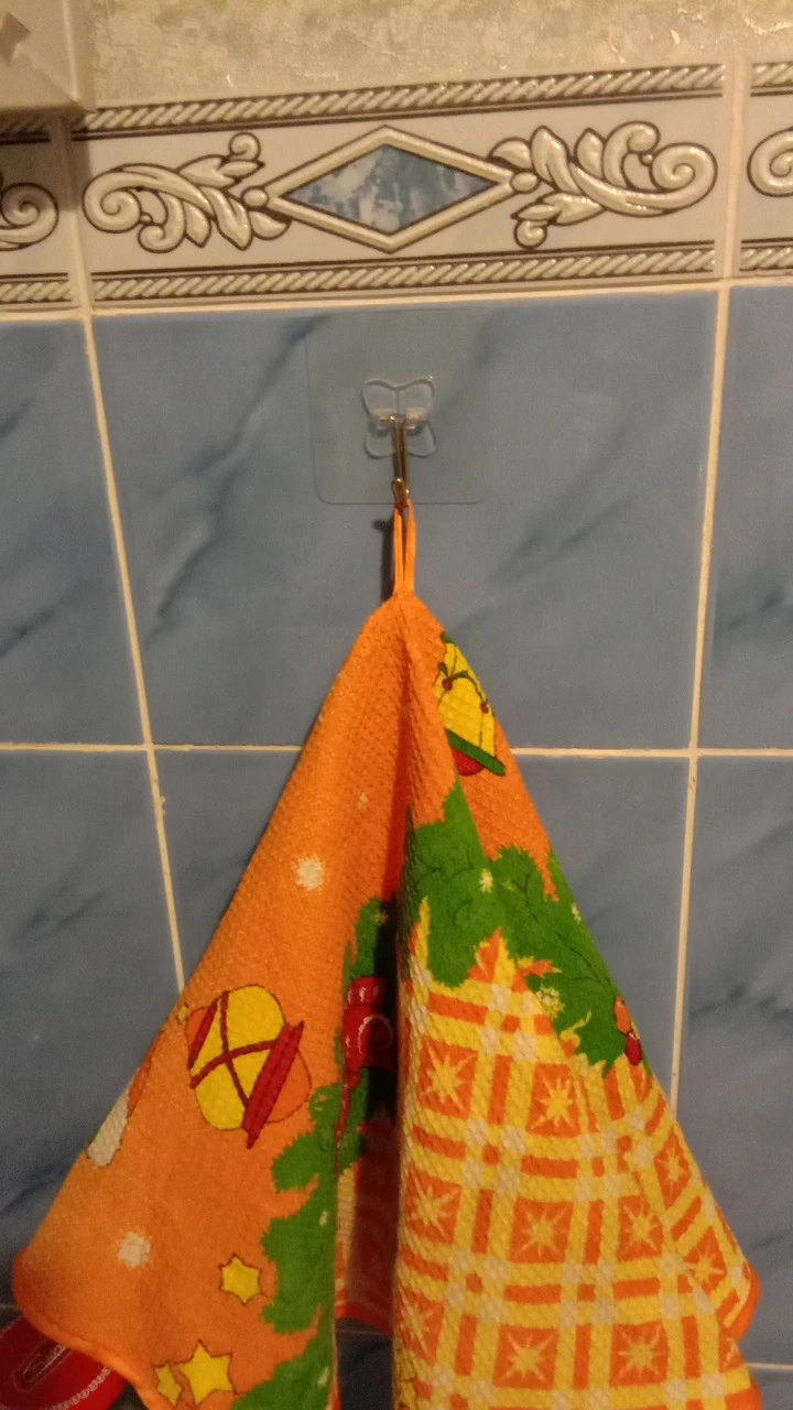 Хорошие крючки. Удобно повесить там где надо, без механического воздействия на поверхность, типа просверлить. Гиря 10 кг. на холодильнике висит без проблем. Главное клеить на чистую гладкую поверхность и затем тщательно разгладить всю приклеевуемую поверхность.
