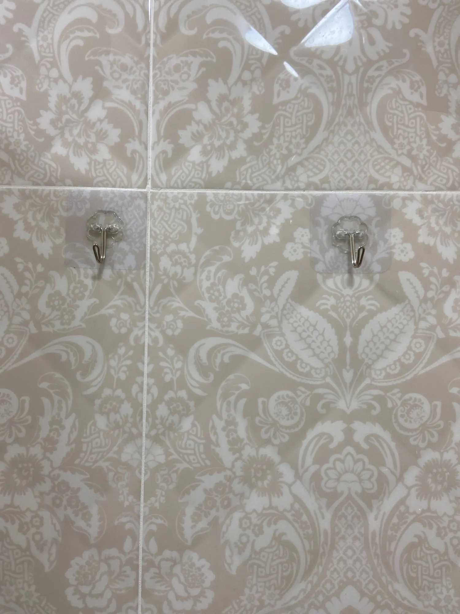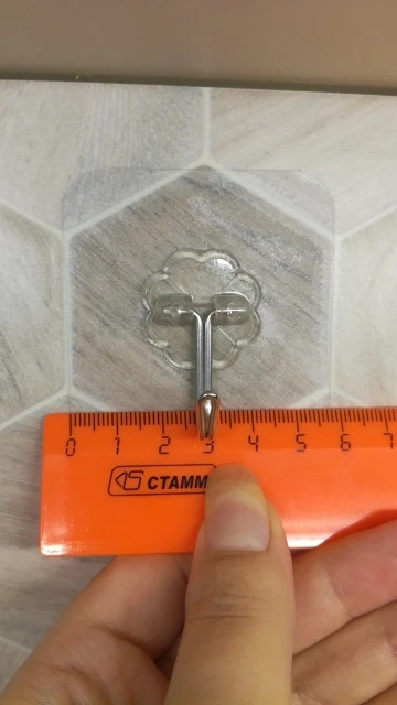 крючки классные. повесила на них прихватки и полочку в ванной, наставлено много и все еще висит. плитка светлая не ровная, поэтому между ромбиками морщинка, под крючком там воздух, на фото думаю видно, но это не мешает хорошо держаться. плитка в ванной ровная, идеально прилегает. своих денег стоит, рекомендую
