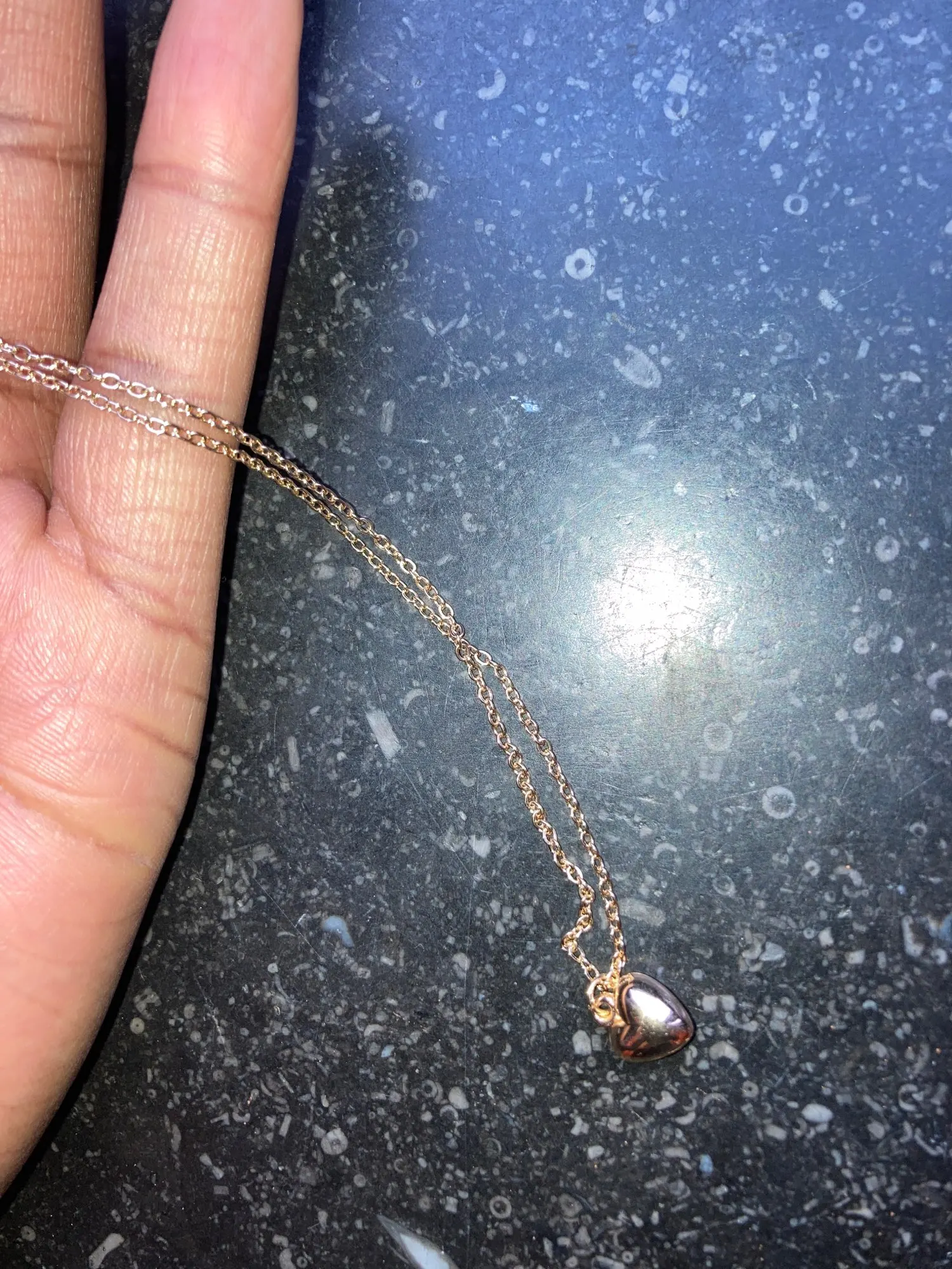 кулон красивый. сердечко за месяц вытерлось. сама цепочка цвет не поменяла. носила каждый день