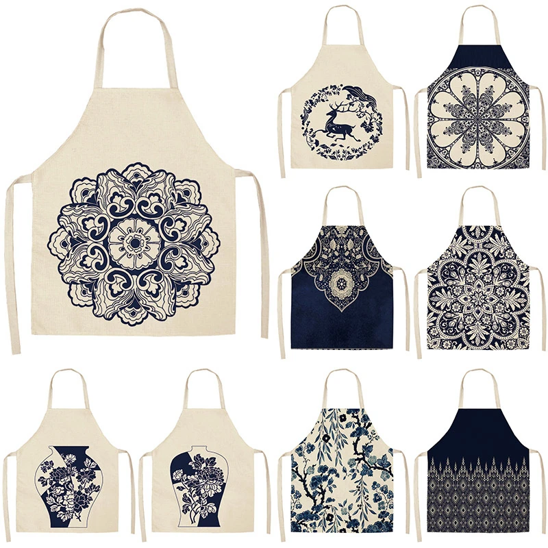 Фарфоровые фарфоровые фартуки с мандалой для женщин, хлопковые льняные нагрудники, предмет для уборки дома, фартук для готовки 53*65 см