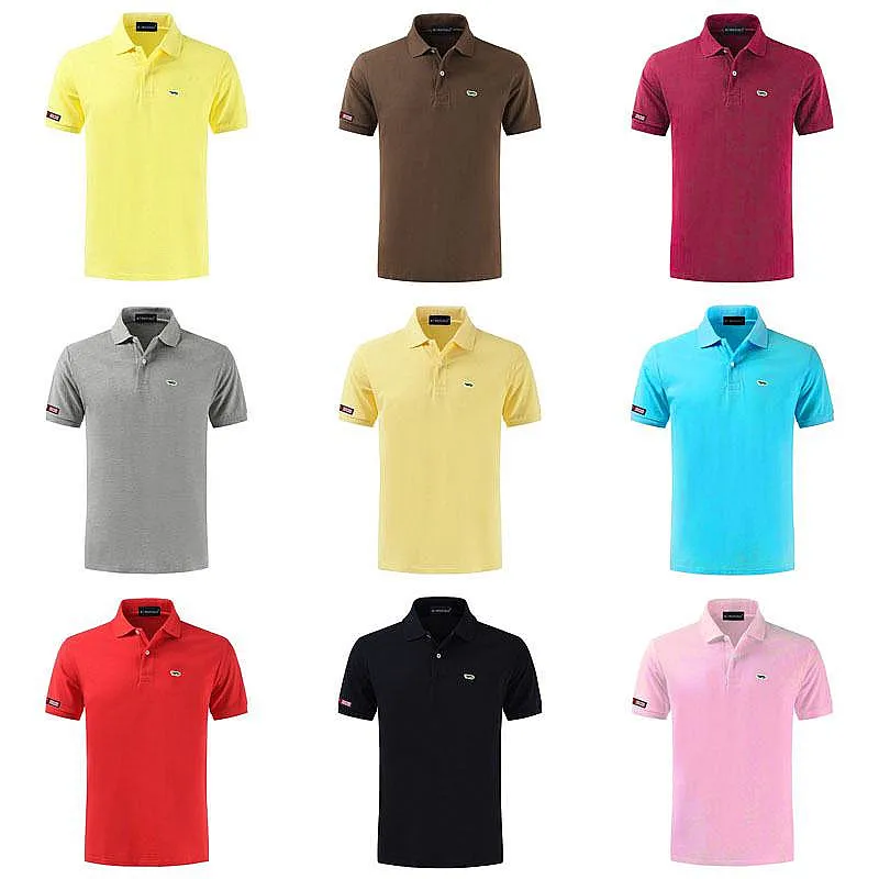 Мужская Однотонная рубашка-поло, Повседневная модная рубашка-поло и...