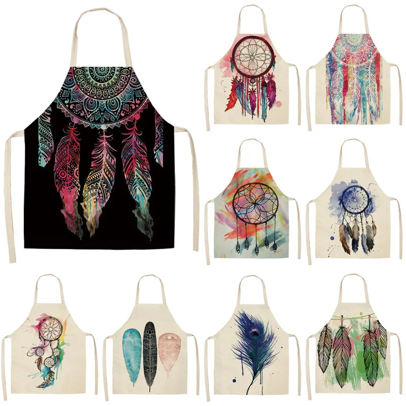 Фарфоровые фарфоровые фартуки с мандалой для женщин, хлопковые льня...
