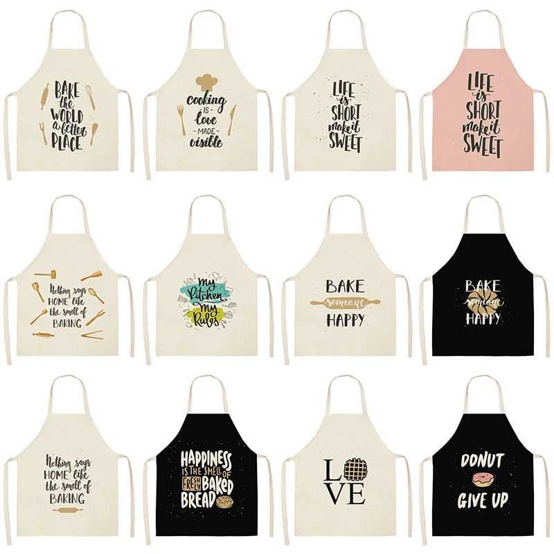 Фартук Кухонный женский с буквами алфавита, 1 шт., хлопковый льняной слюнявчик, домашняя уборка, передник, фартук для готовки, 53*65 см