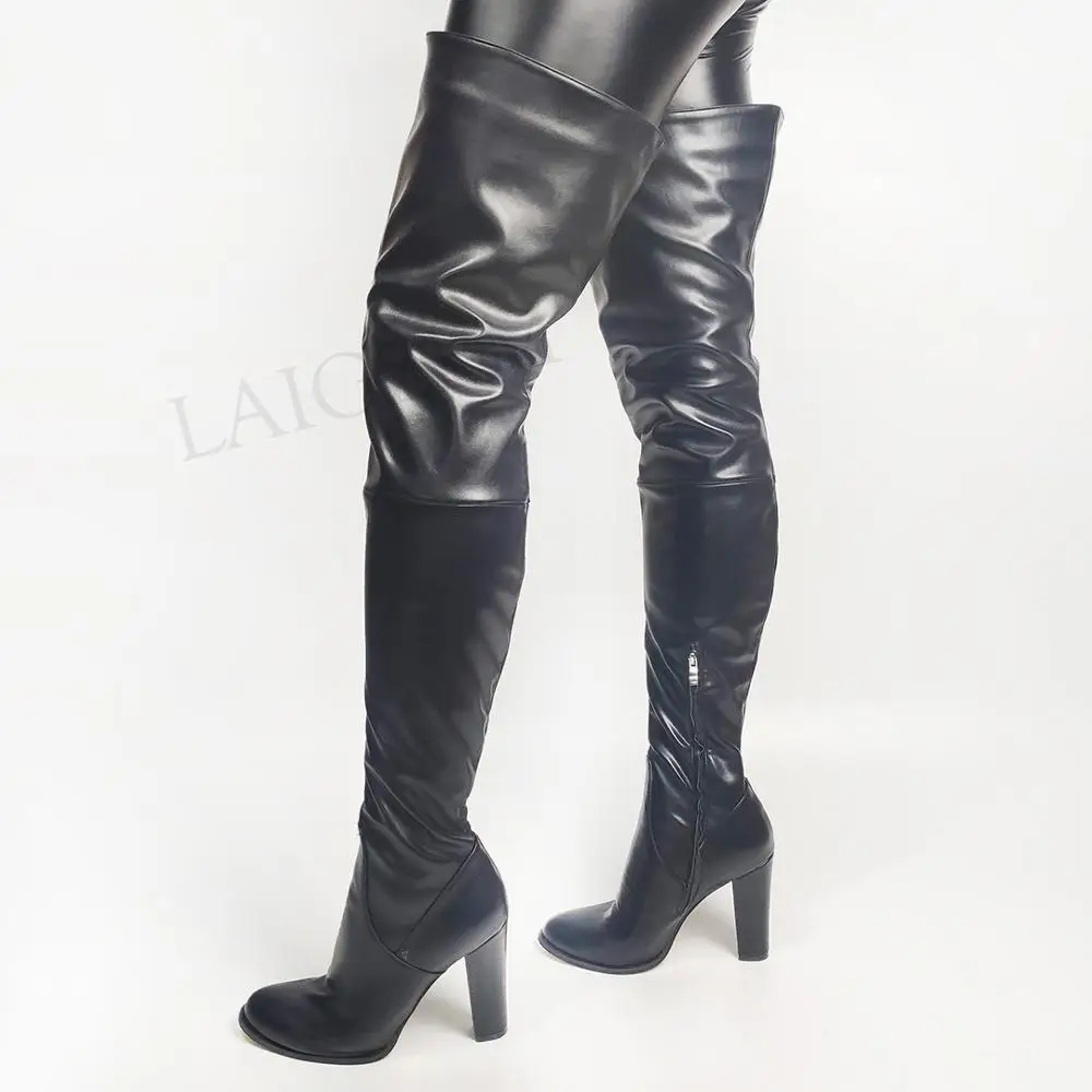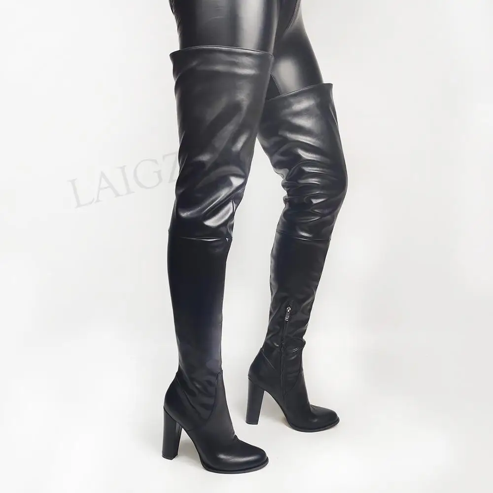 SEIIHEM/женские сапоги до бедра; Сапоги выше колена на блочном высоком каблуке; Женская обувь на молнии; Zapatos Stivali; Большие размеры 43, 44, 45, 46, 47