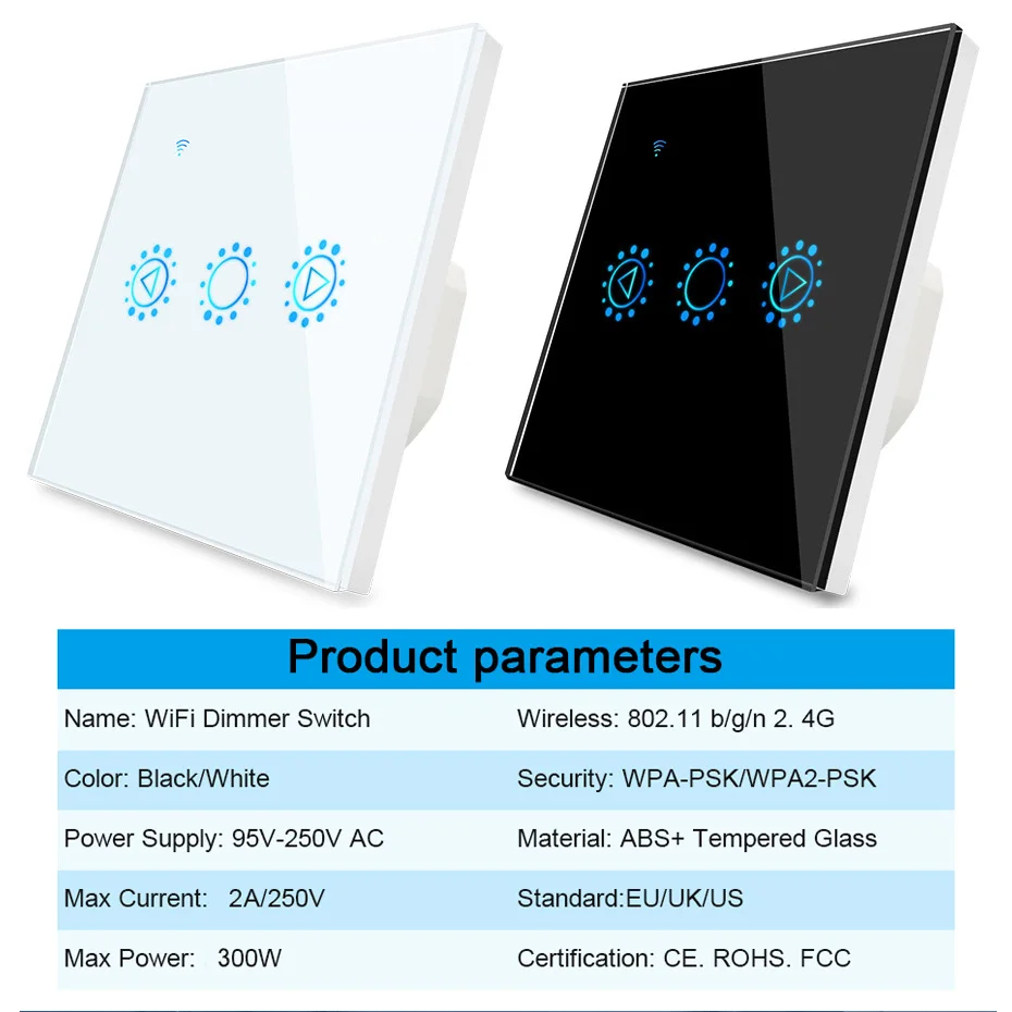 Сам по себе красивый Диммер по хорошей цене. Snafu: К сожалению, синий светодиодный индикатор Wifi на диммере не выключается, выходя из комнаты в темно-синем освещении. Это нежелательно. Сопряжение с приложением Smart life и плавная работа.
