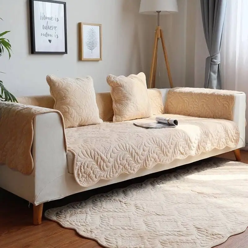 Короткое плюшевое покрывало для дивана в европейском стиле, однотонное нескользящее покрывало для дивана в гостиной