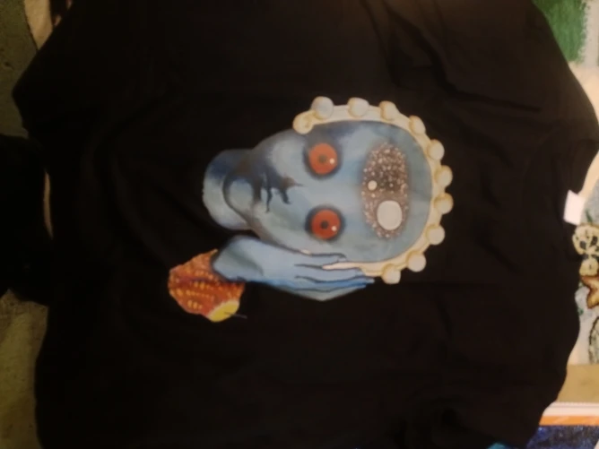 Принт немного размыт (особенно на руке, области наручных часов). Правильный размер. Принт также не такой большой, как показано на витрине. Доставка хорошая и быстрая. Мягкий синтетический материал рубашки.