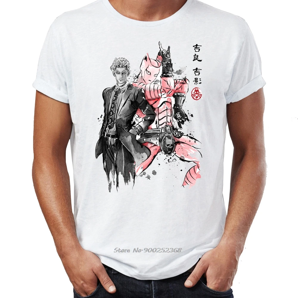 Фирменная Новинка Для мужчин футболка хлопок приключения Джоджо Jojo аниме Manga, потрясающие иллюстрации с О-образным вырезом Футболка уличная одежда