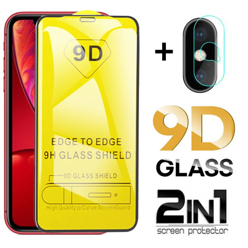 3 в 1 9D передняя + линза + чехол закаленное стекло для Apple iphon...