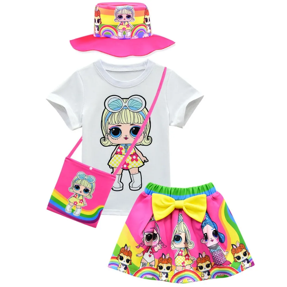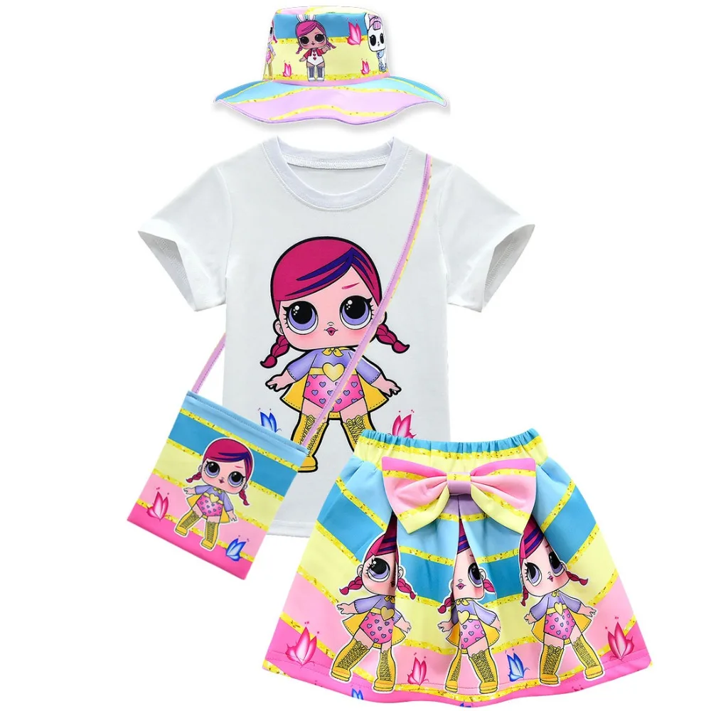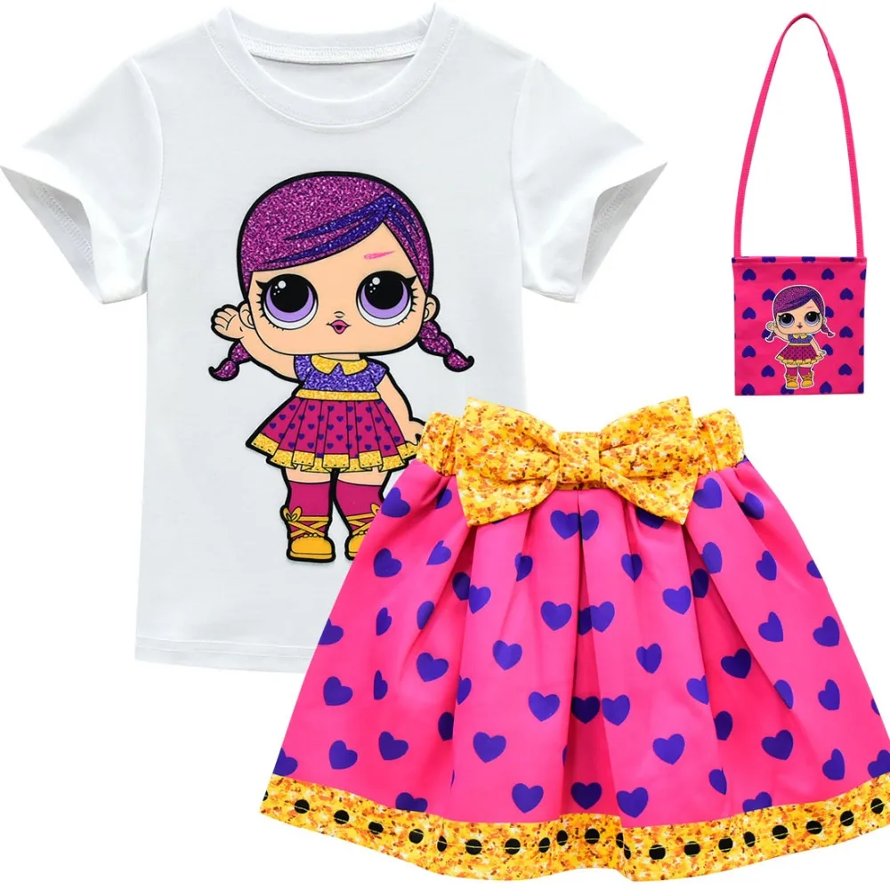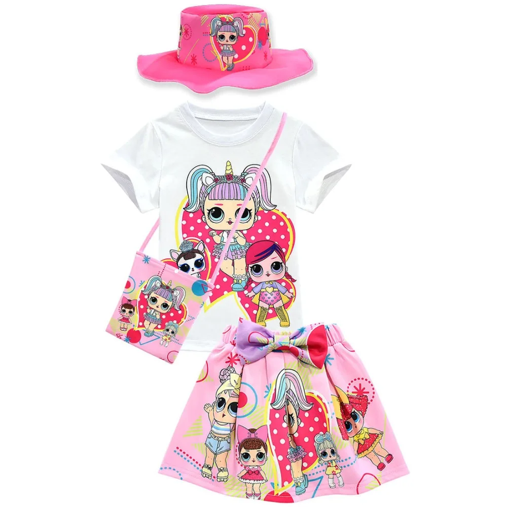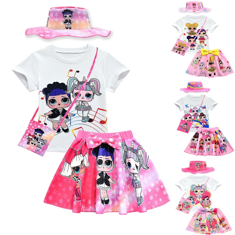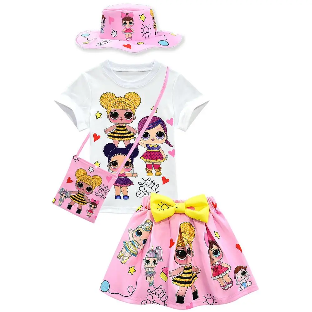 LOL Surprise Dollкомплект одежды принцессы для девочек, футболка + юбка с бантом + сумка + шапочка, наряды детские топы, футболки, юбки