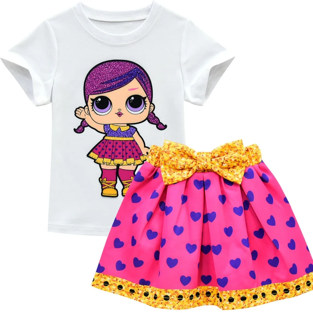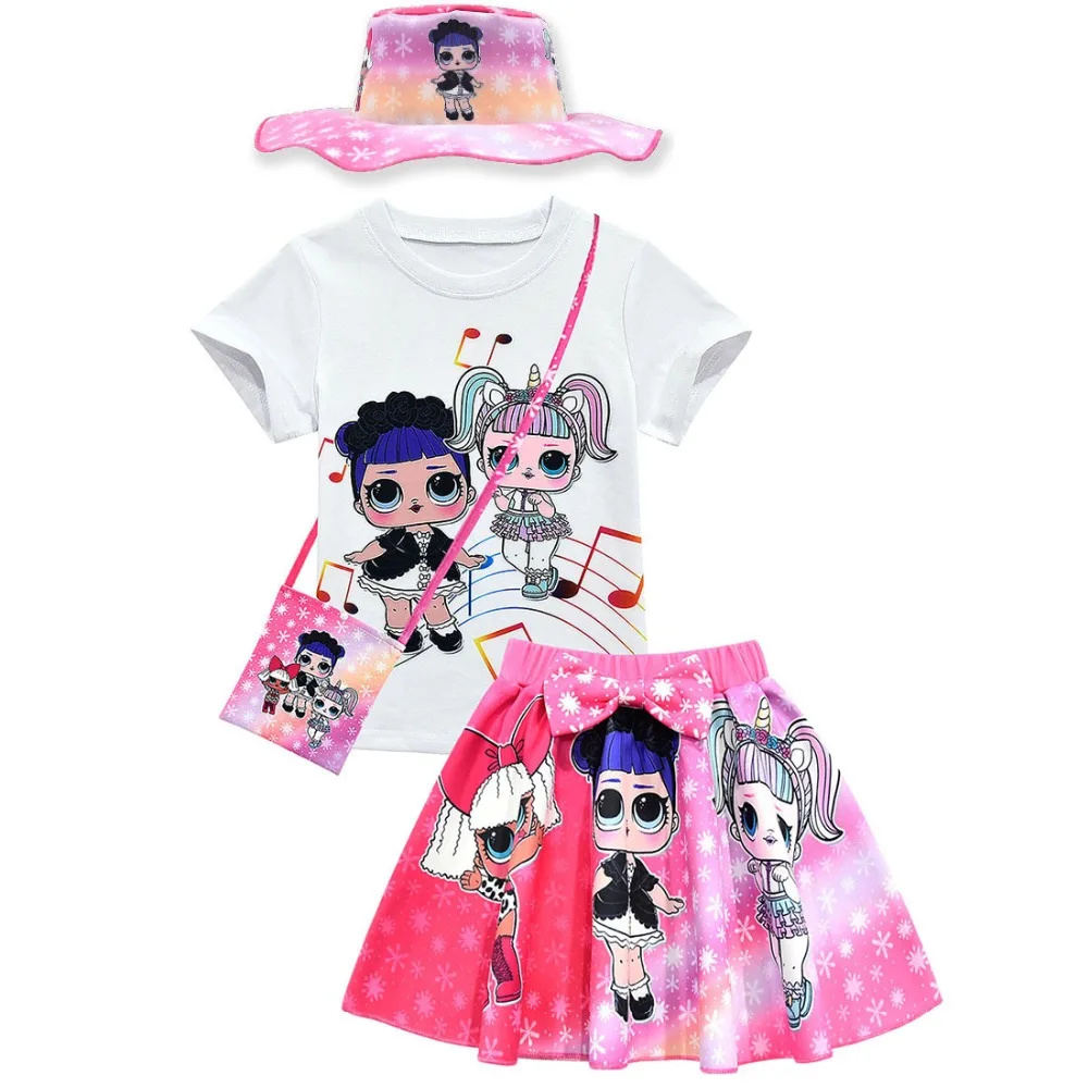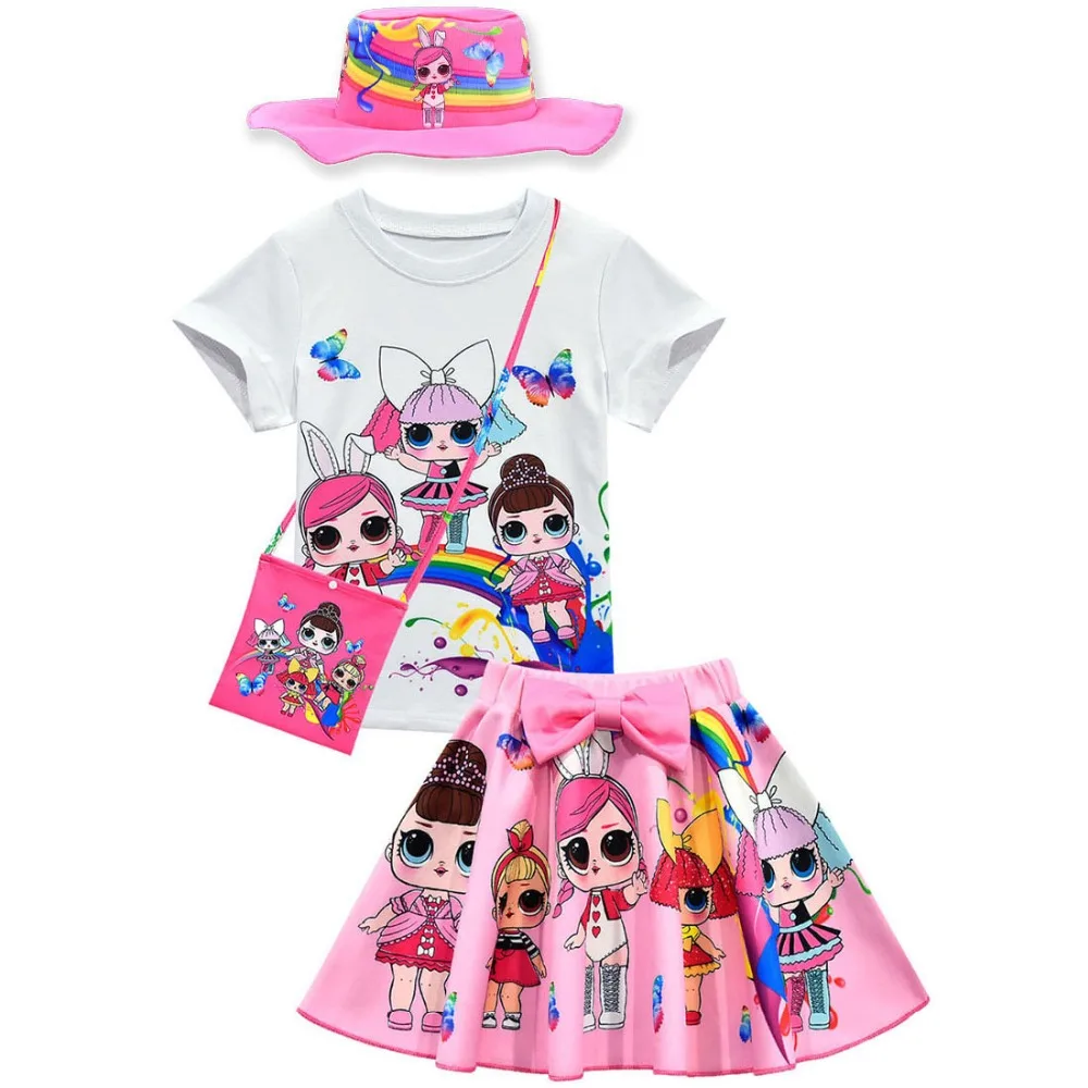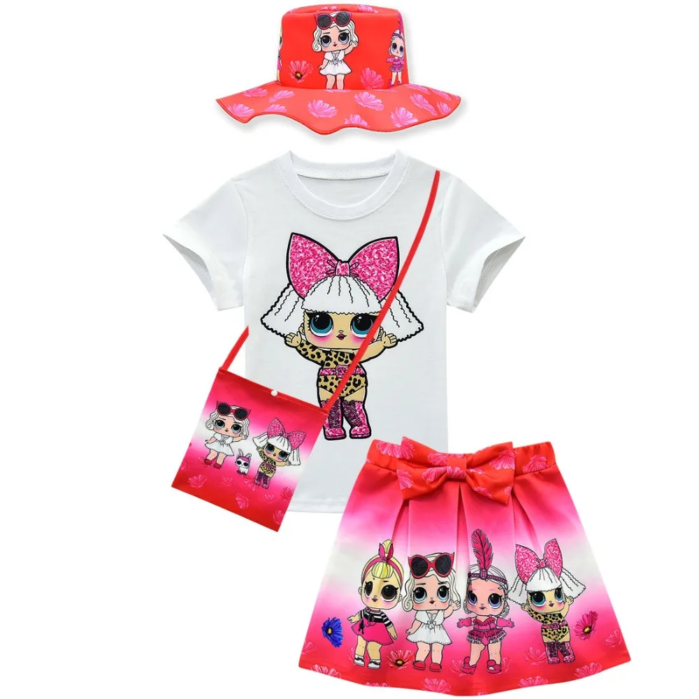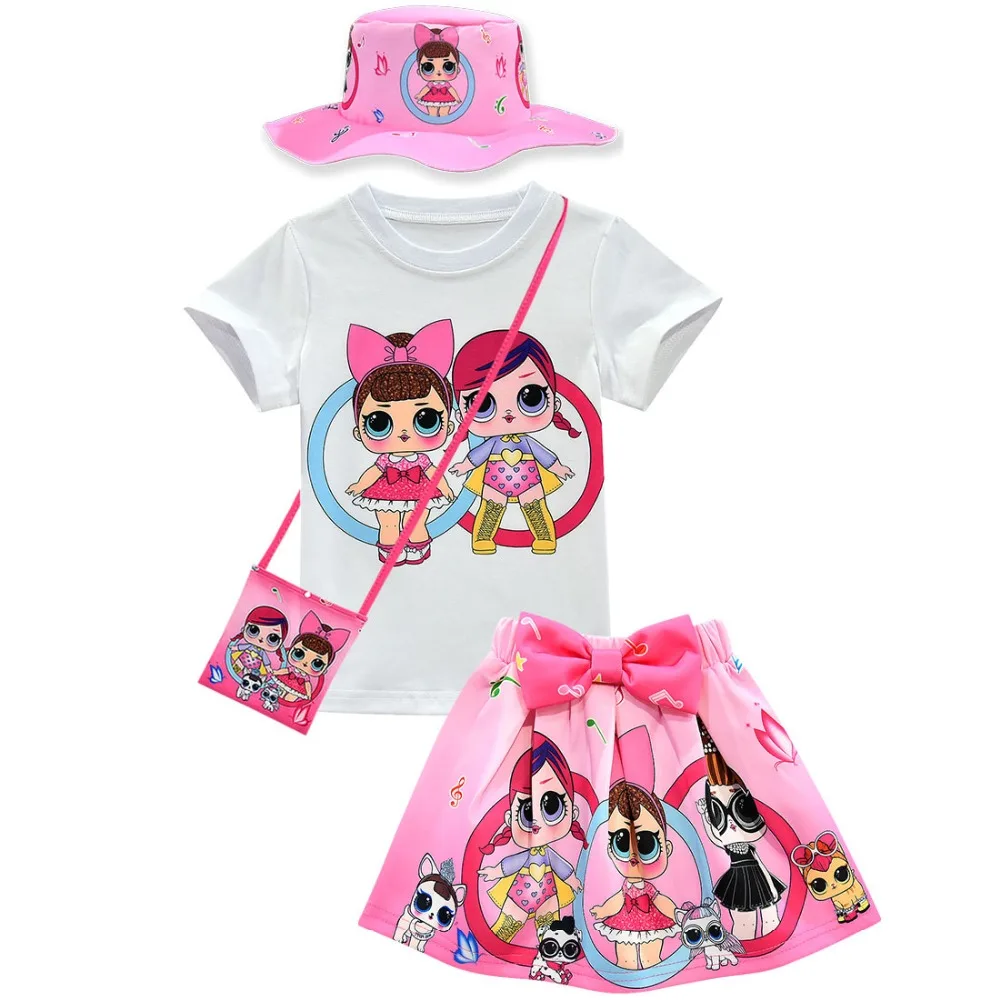 LOL Surprise Dollкомплект одежды принцессы для девочек, футболка + юбка с бантом + сумка + шапочка, наряды детские топы, футболки, юбки