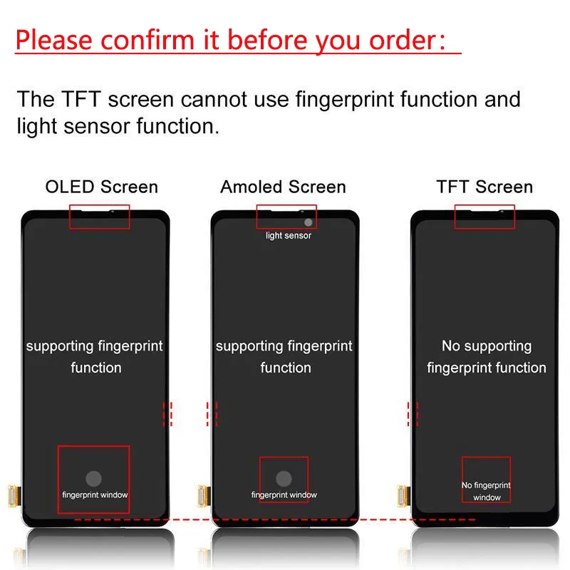 2. Качество Amoled и OLED с функцией отпечатка пальца, качество tft безФункция отпечатков пальцев!