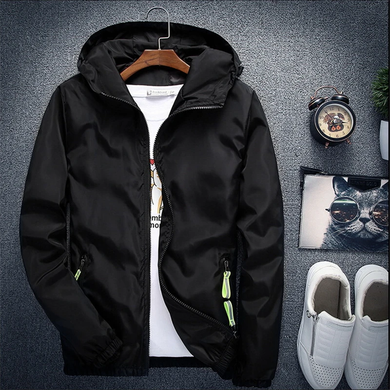 Куртка-бомбер для мужчин и женщин, повседневная однотонная ветровка на молнии, тонкая приталенная куртка с капюшоном, пилот, верхняя одежда, размера плюс 7XL, осень
