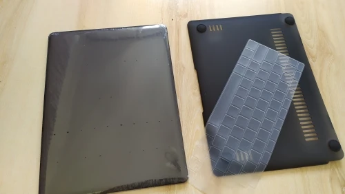 Товар прибыл вовремя! Я выбрал «Хрустальный черный» для Huawei matebook 13, и на фотографиях вы можете увидеть, как он выглядит. Ваши отпечатки пальцев будут слегка отмечены на материале, как на защитной клавиатуре, так и на чехле, но описание соответствует тому, что предлагается. Что-то отрицательное в том, что материал немного царапается.