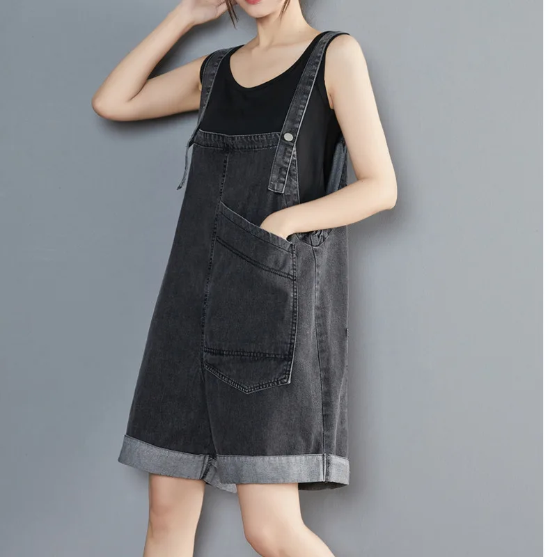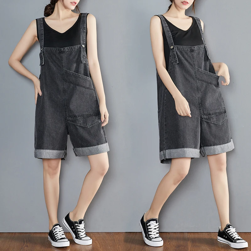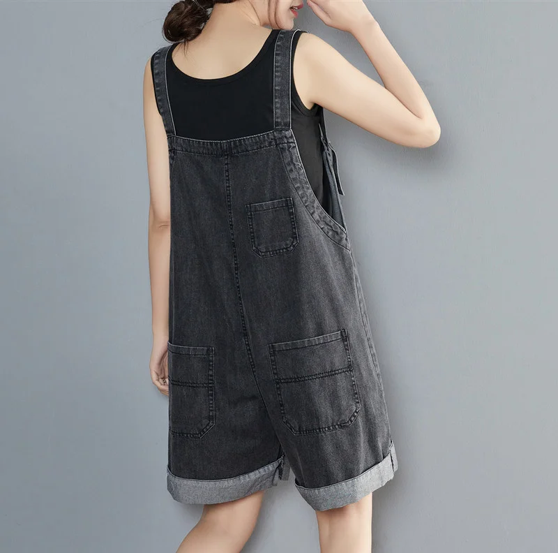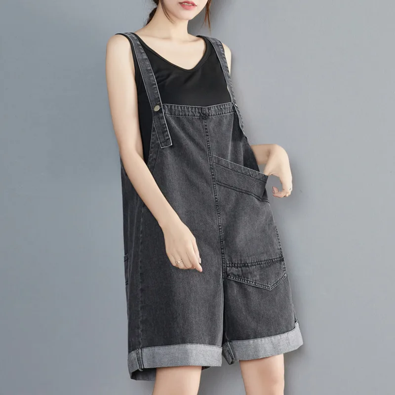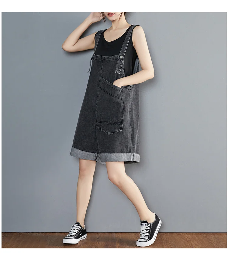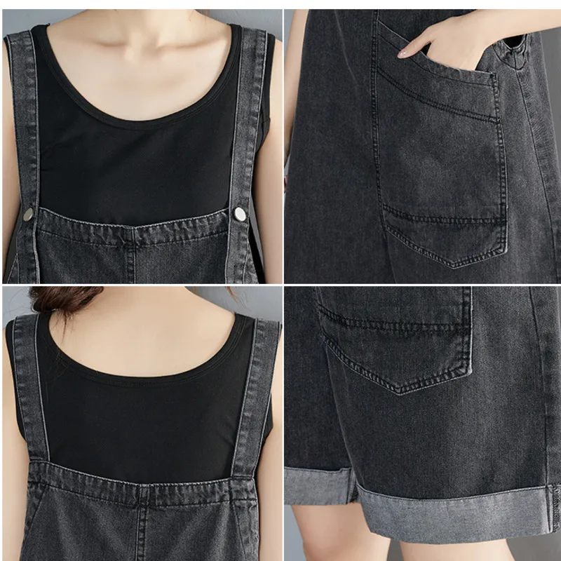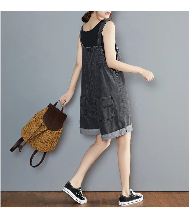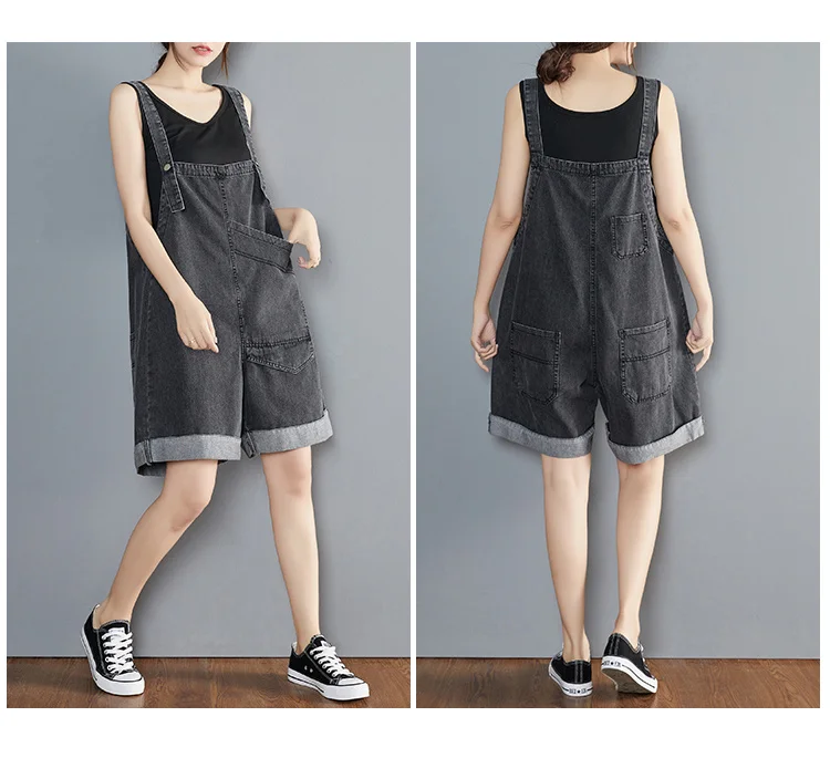 Женский джинсовый комбинезон без рукавов, черный свободный комбинезон из хлопка, с карманами, лето 1420