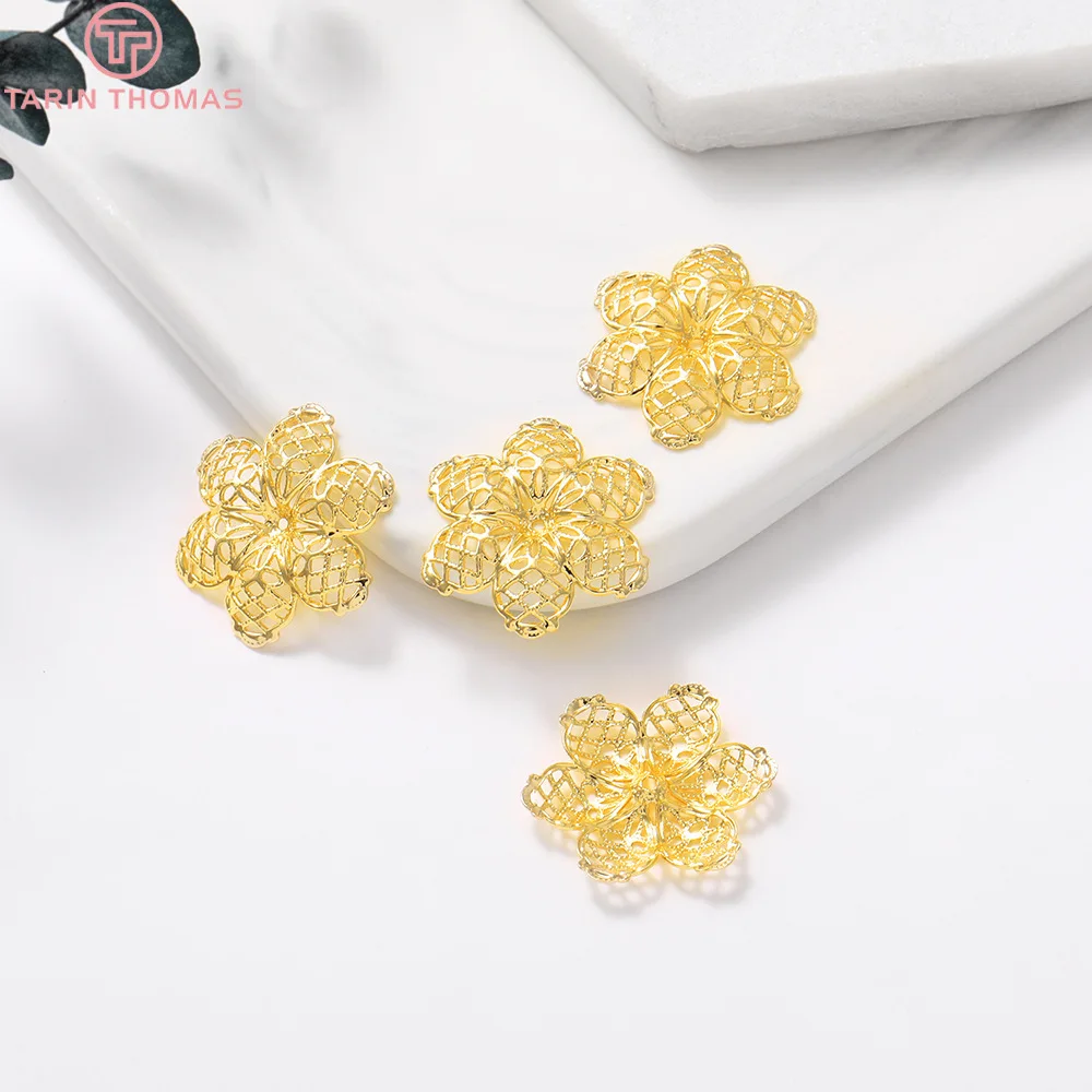 6 шт. 10 мм 24 к цвета шампанского позолоченные латунные полые розы, цветы бусины-разделители браслет бусины Высокое качество ювелирные аксессуары $4,47