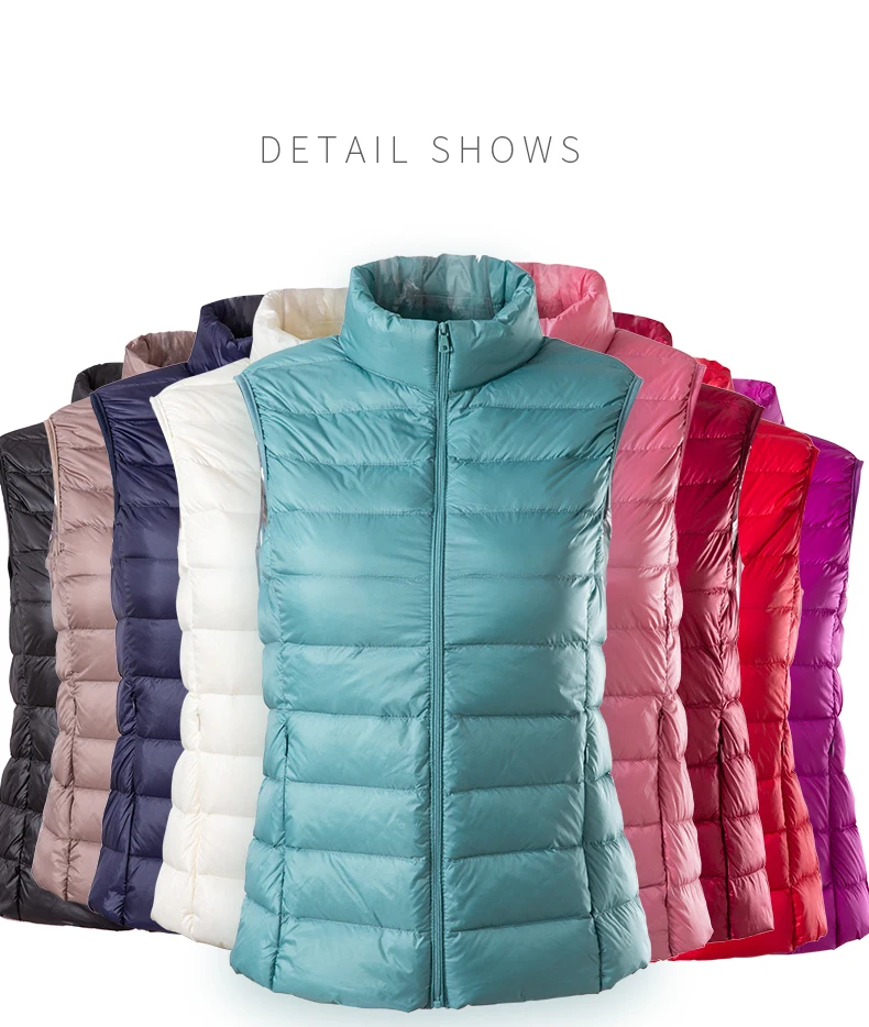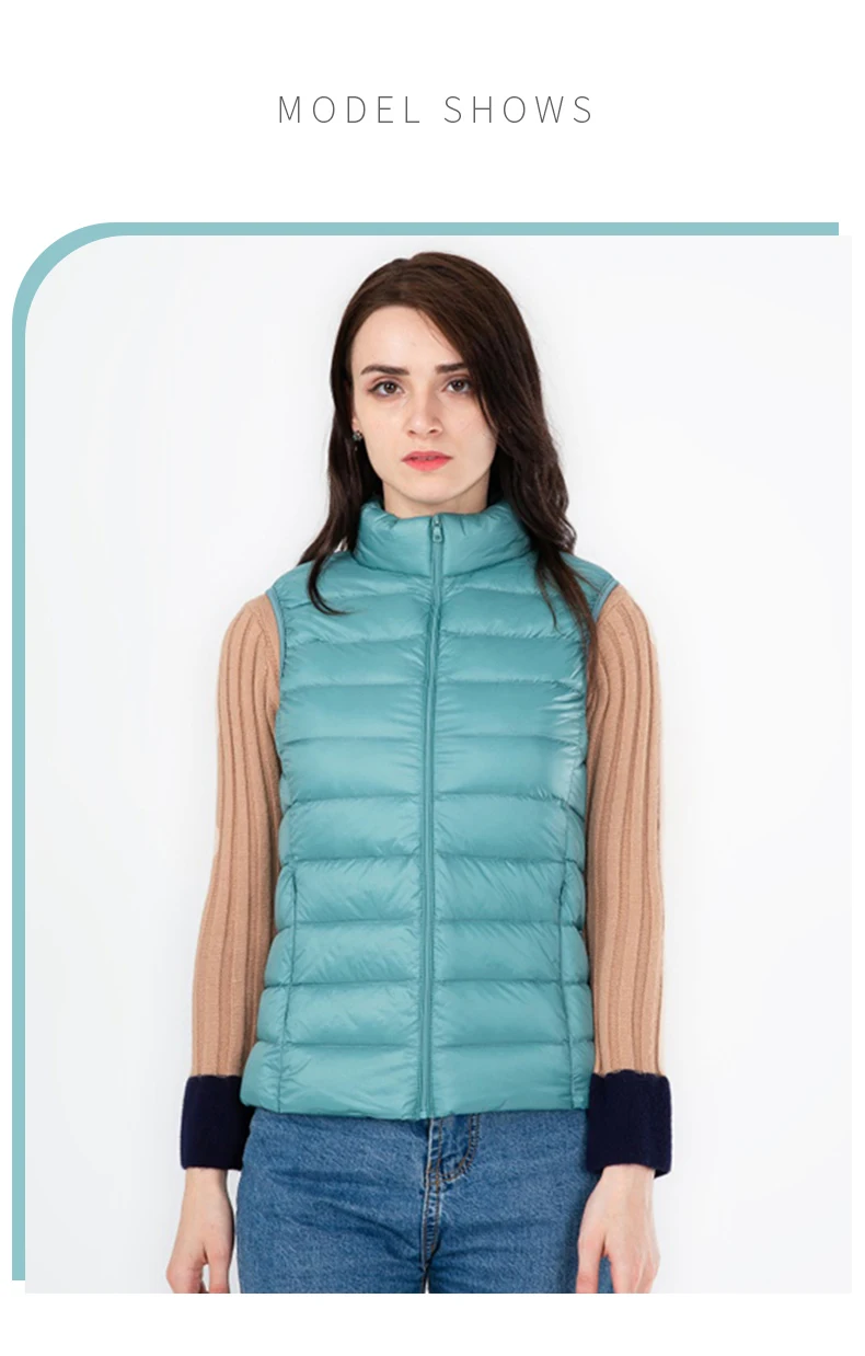 Женский пуховик, ультрасветильник, тонкий, ветрозащитный, без рукавов, на утином пуху