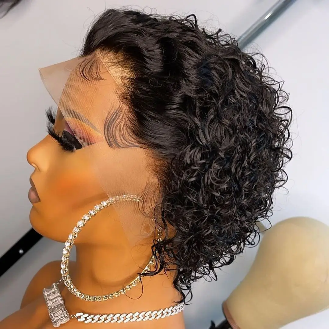 Короткие вьющиеся волосы, парик с кружевом, парик из натуральных человеческих волос 13 х1, парик с кудрявыми волосами без повреждений, натуральные черные волосы джарина, оптовая продажа, 1-2-3 шт.