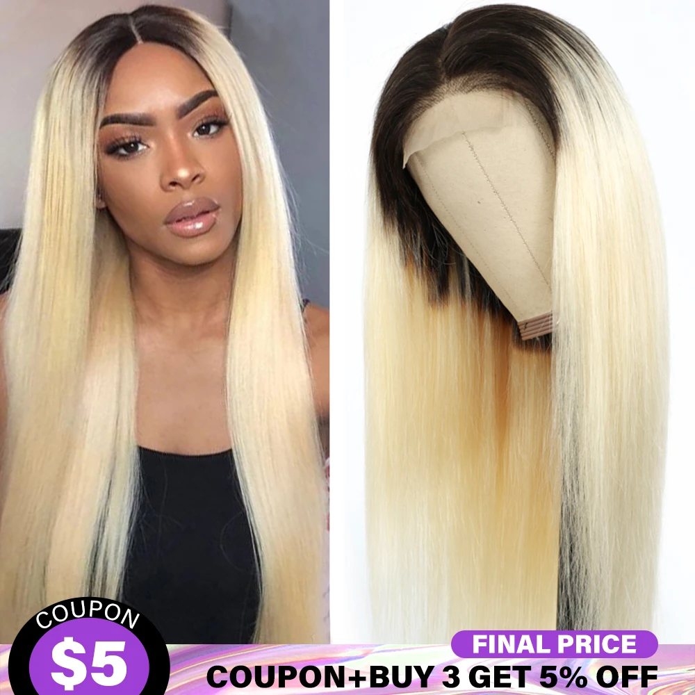 Парики из натуральных волос T1B613 с эффектом омбре, бразильские прямые волосы Remy, предварительно выщипанные, 13x4, плотность 150%