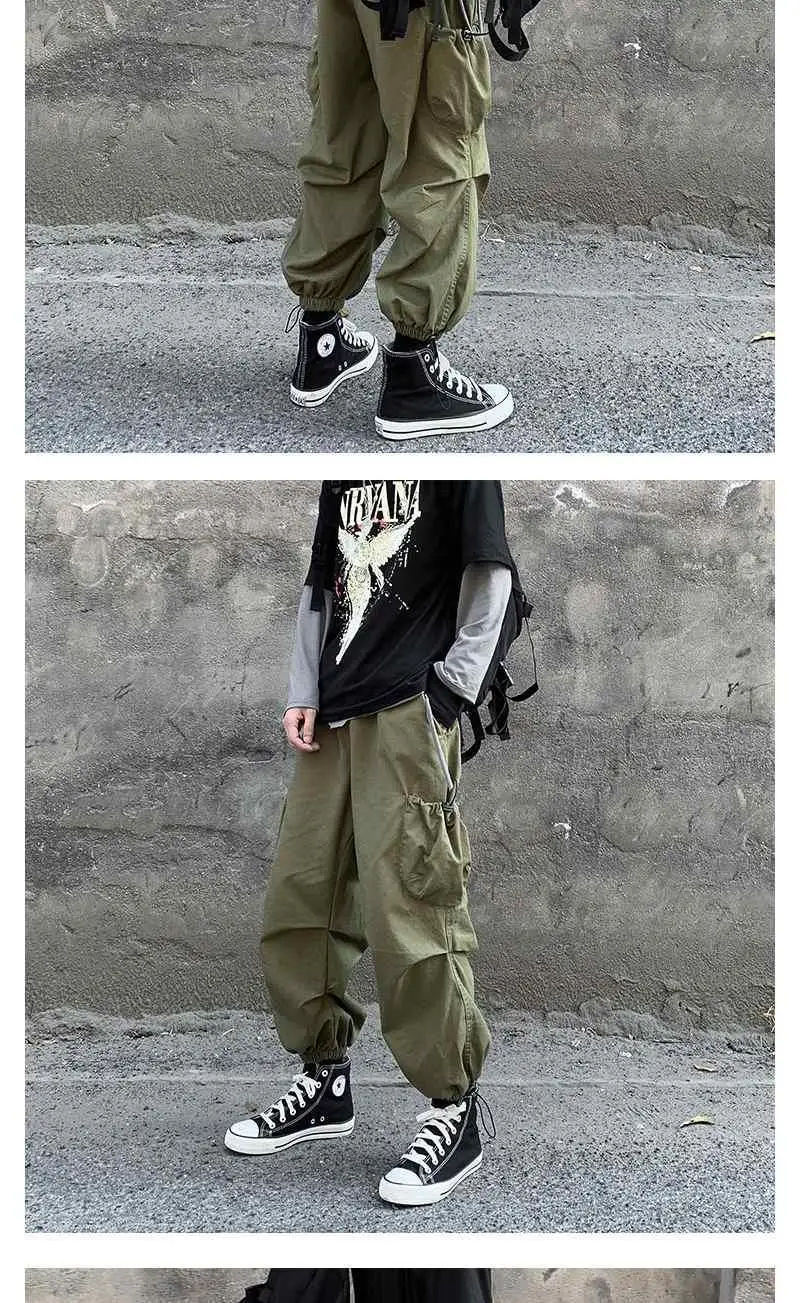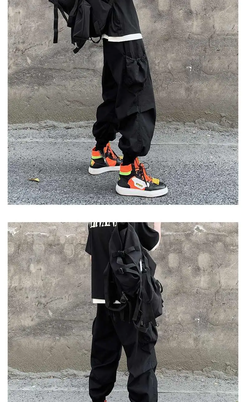 Мужские повседневные брюки со шнуровкой, однотонные Свободные повседневные брюки в стиле оверсайз с множеством карманов, длиной до щиколотки, в Корейском стиле