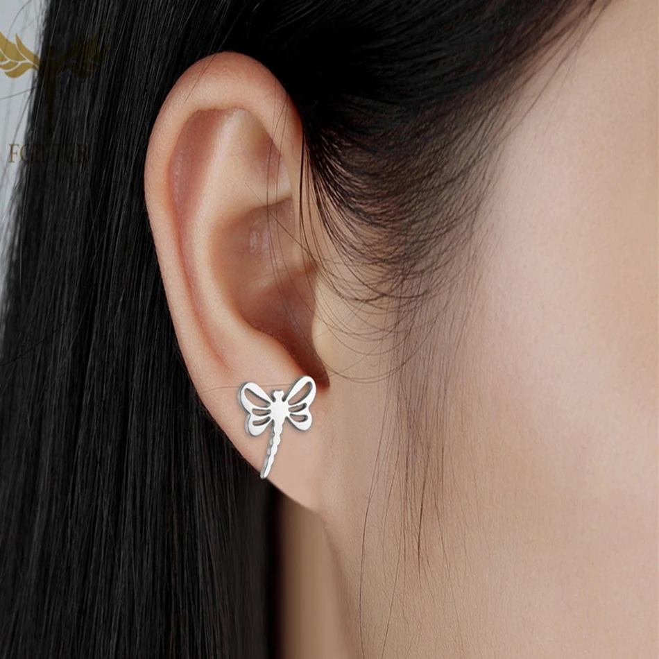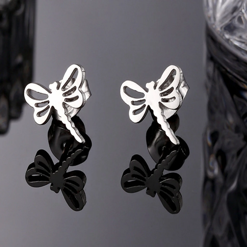 Серьги в виде стрекозы, милое женское украшение из нержавеющей стал...