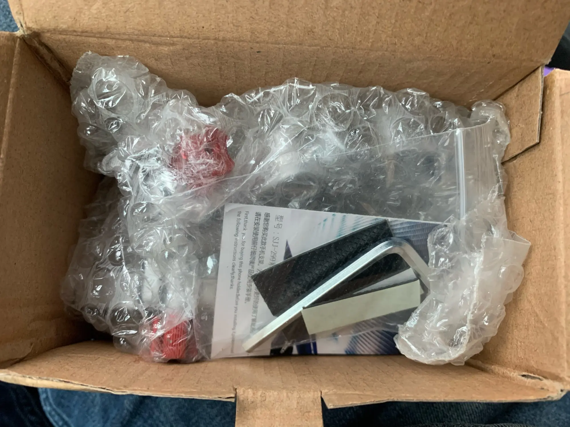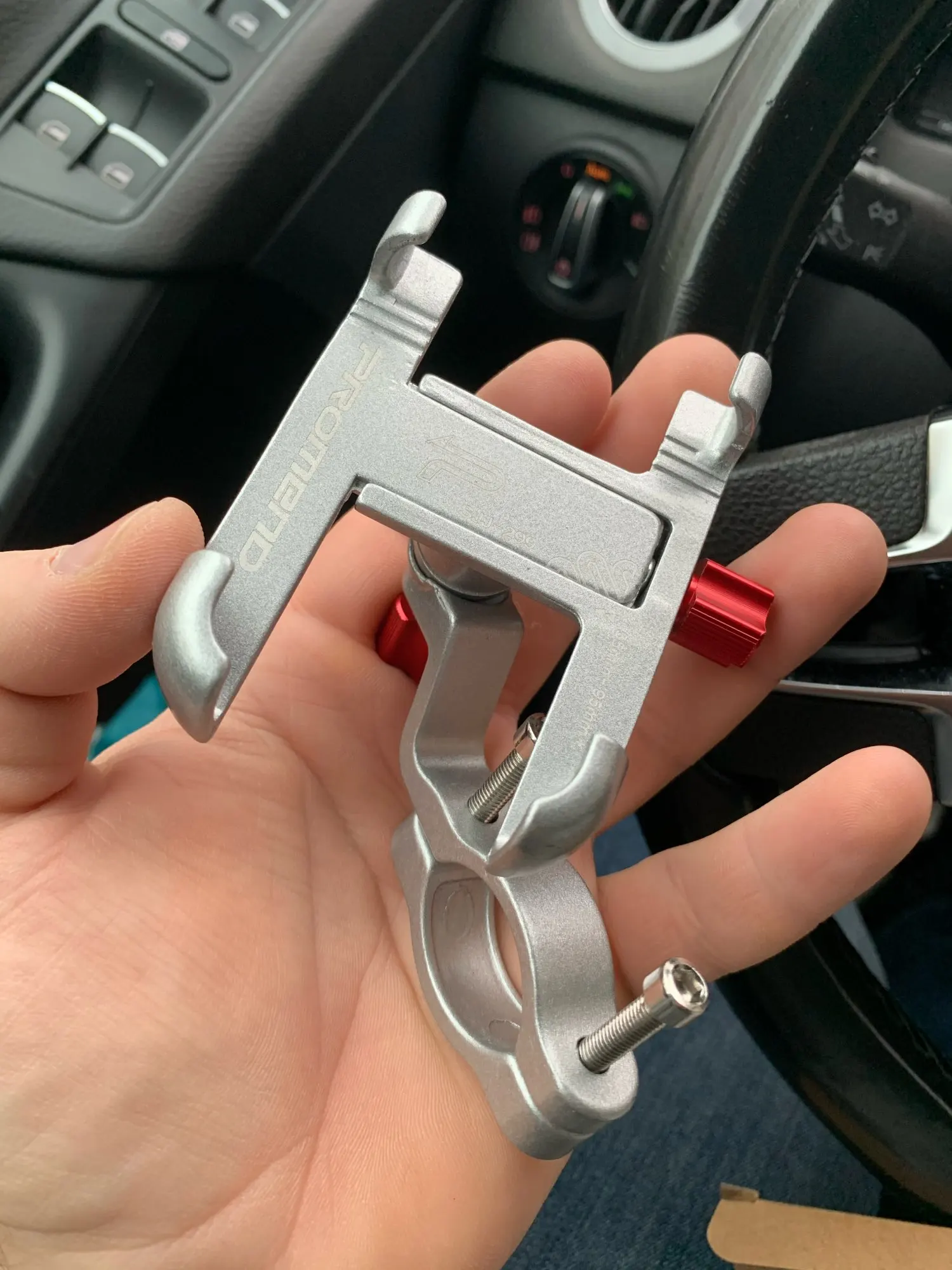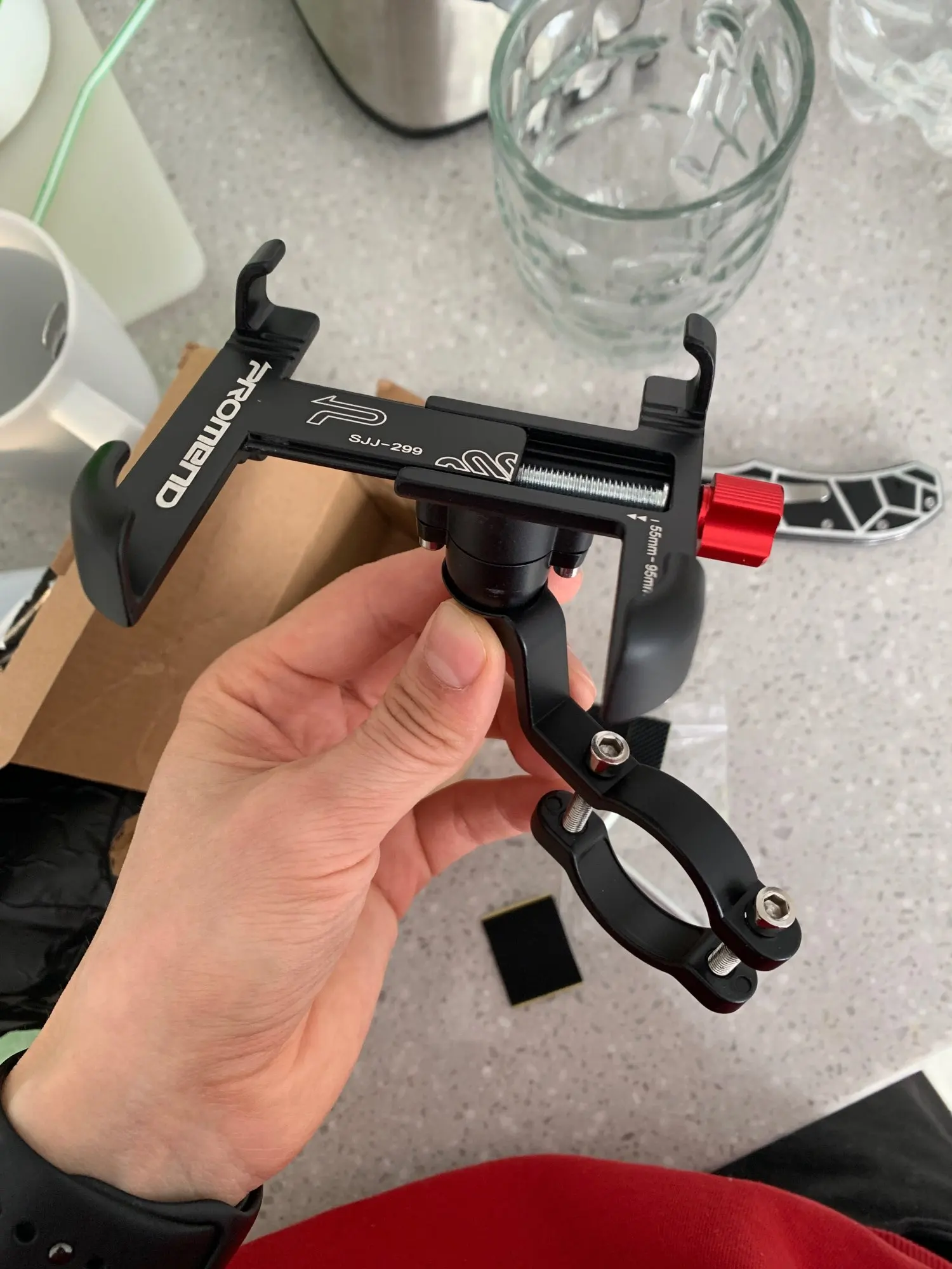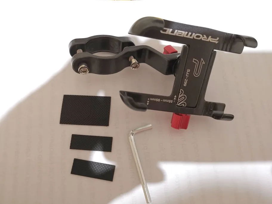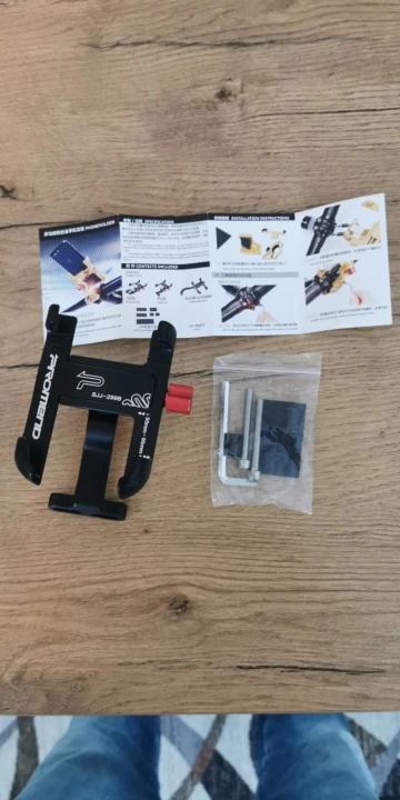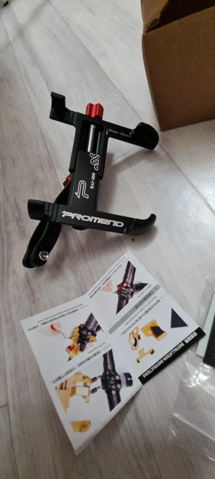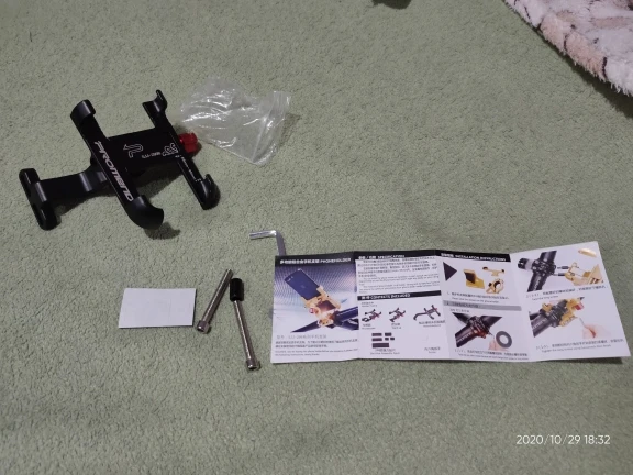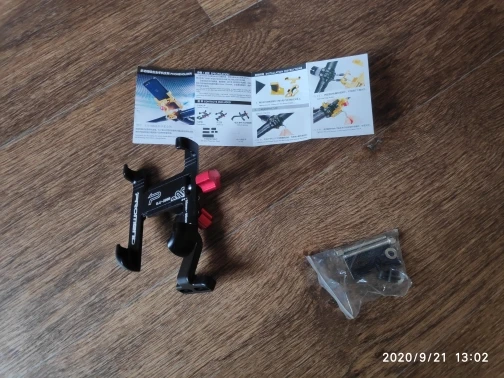 Посылка шла до Москвы 12 дней, упаковка помята, но товар в хорошем состоянии. В комплекте: держатель, резиновые наклейки чтобы не царапался телефон в тесках, шестигранник и инструкция) крепится на руль жёстко, само крепление прочное и надёжное, телефон Mi5S Plus 5,7" поместился без труда, можно установить телефон большего размера. Товар рекомендую к покупке. Продавец молодец!