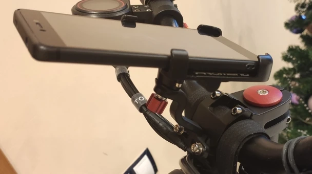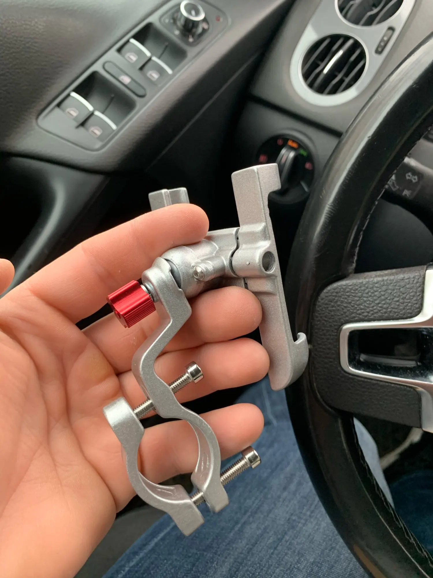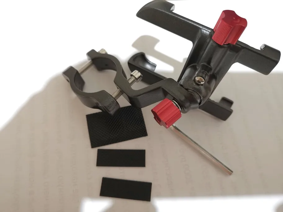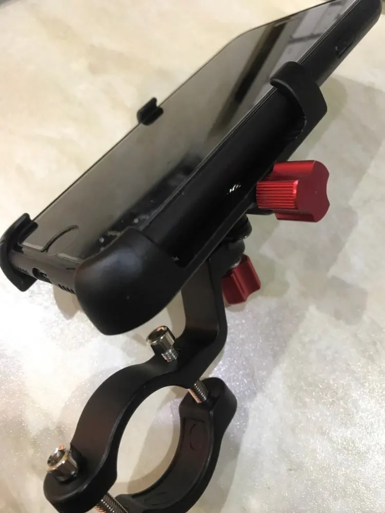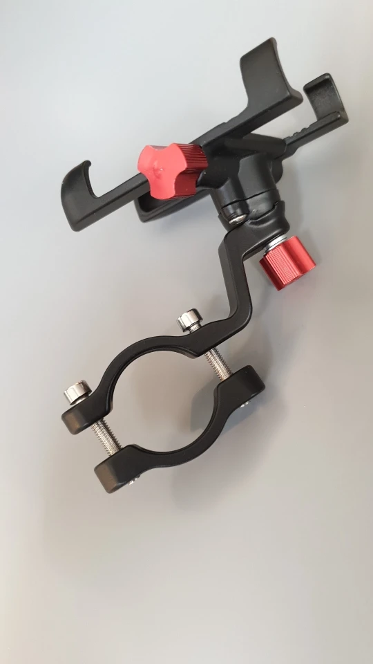 Очень устойчивый телефон полностью прикреплен очень безопасно. Регулировка осуществляется рулонами и плотно прилегает (весь материал, включая рулоны, алюминий, не имеет пластика)