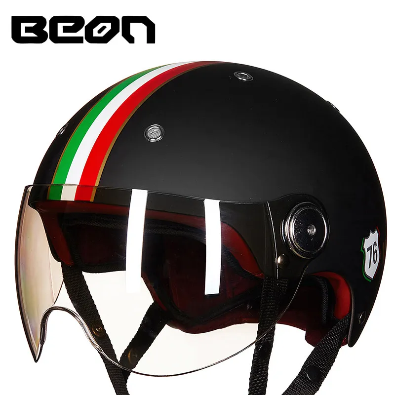 Мотоциклетный шлем BEON, шлем для мужчин и женщин в винтажном стиле...