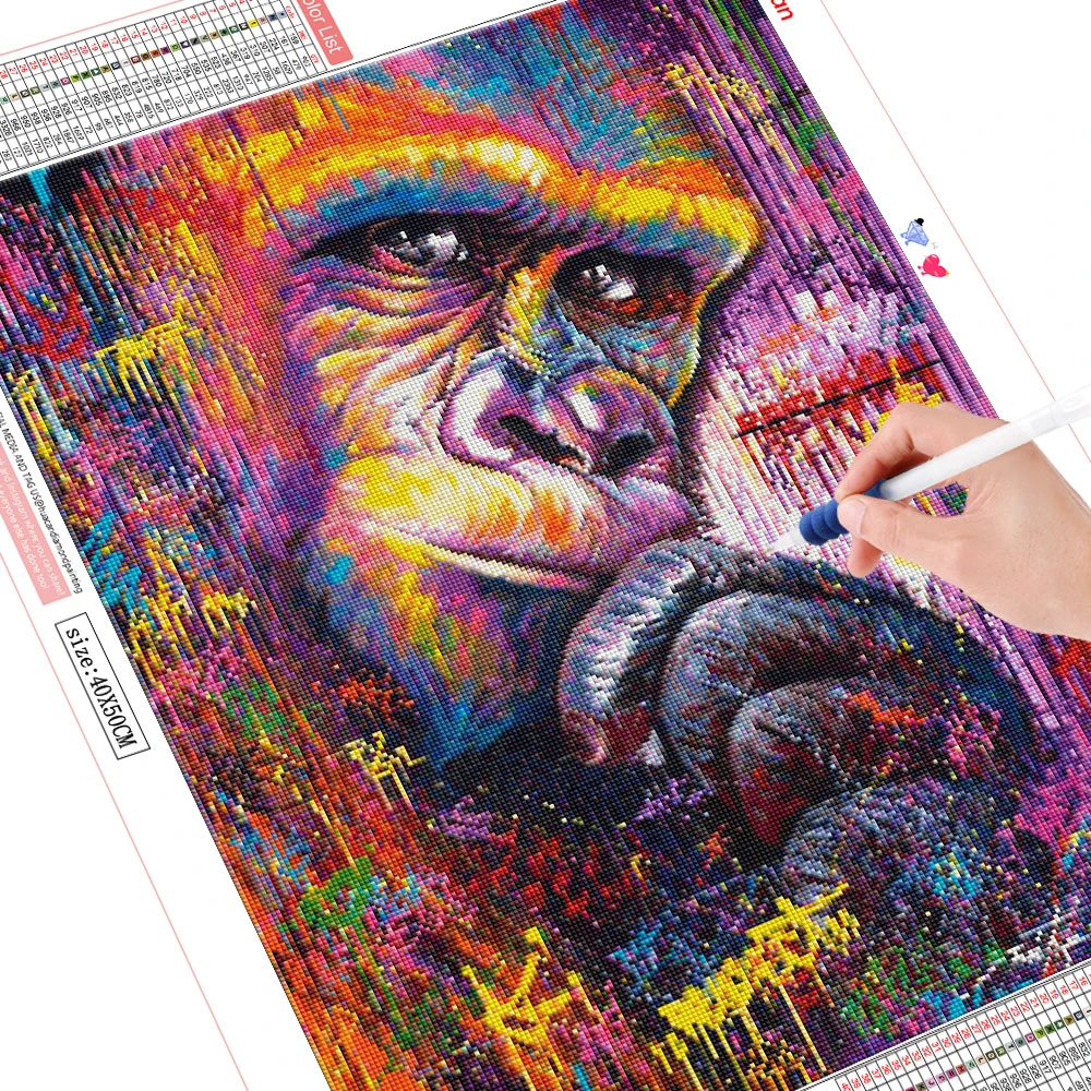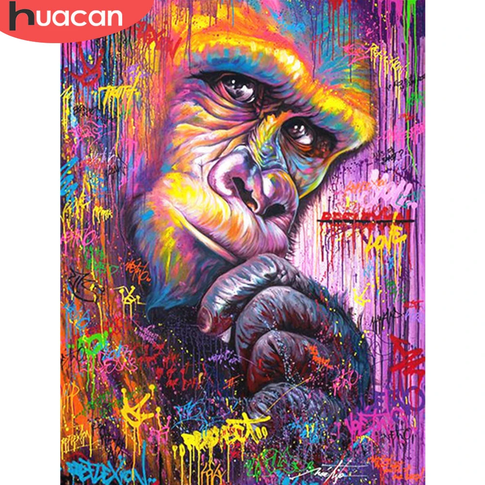 HUACAN Алмазная вышивка животные Полная площадьКруглый картины из алмазов горилла вышивка крестиком