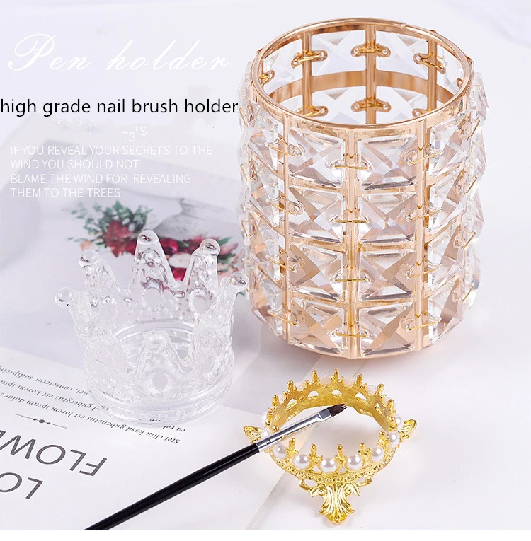 2020NEW Высококачественная Металлическая корона подставка для ногтей Хрустальная бутылка для ногтей Корона держатель кисточки для ногтей аксессуар для дизайна ногтей