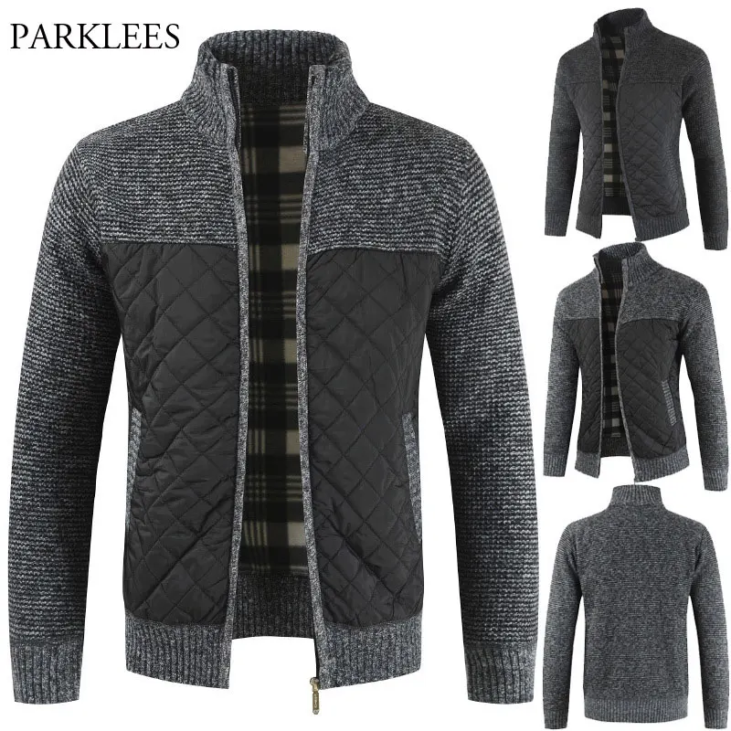 Мужские зимние куртки с хлопковым верхом, вязаный свитер куртка для...