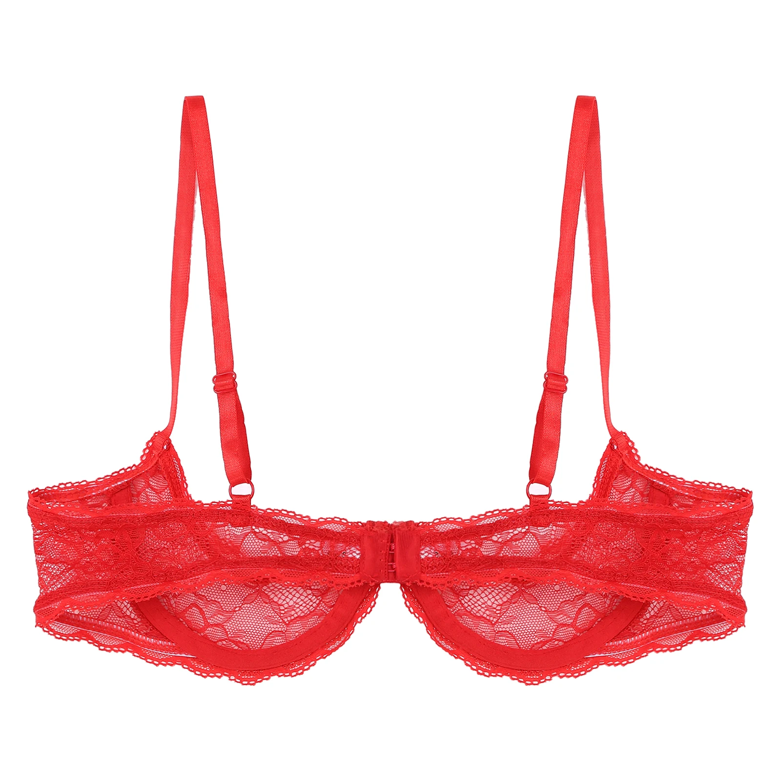 Особенности:Женский прозрачный кружевной бюстгальтер на косточках, привлекательное и очаровательное нижнее белье.Регулируемые бретельки-спагетти, волнистая отделка 1/4 чашки и дизайн на косточках для хорошей поддержки.Задняя сторона 3 ряда с двумя застежками на крючках для надежной фиксации. Дышащая и легкая ткань, удобная в носке.Идеально подходит для романтической ночи, свадебной ночи, лучший подарок на День святого Валентина для себя или ваших любимых.Пожалуйста, проверьте размер перед покупкой, ручная стирка только в холодной воде.