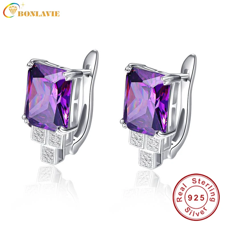 Серьги-гвоздики BONLAVIE для пирсинга женские, ювелирные украшения для ушей фиолетового цвета с аметистом, серебро 100% пробы, Свадебная и вечерняя мода 925