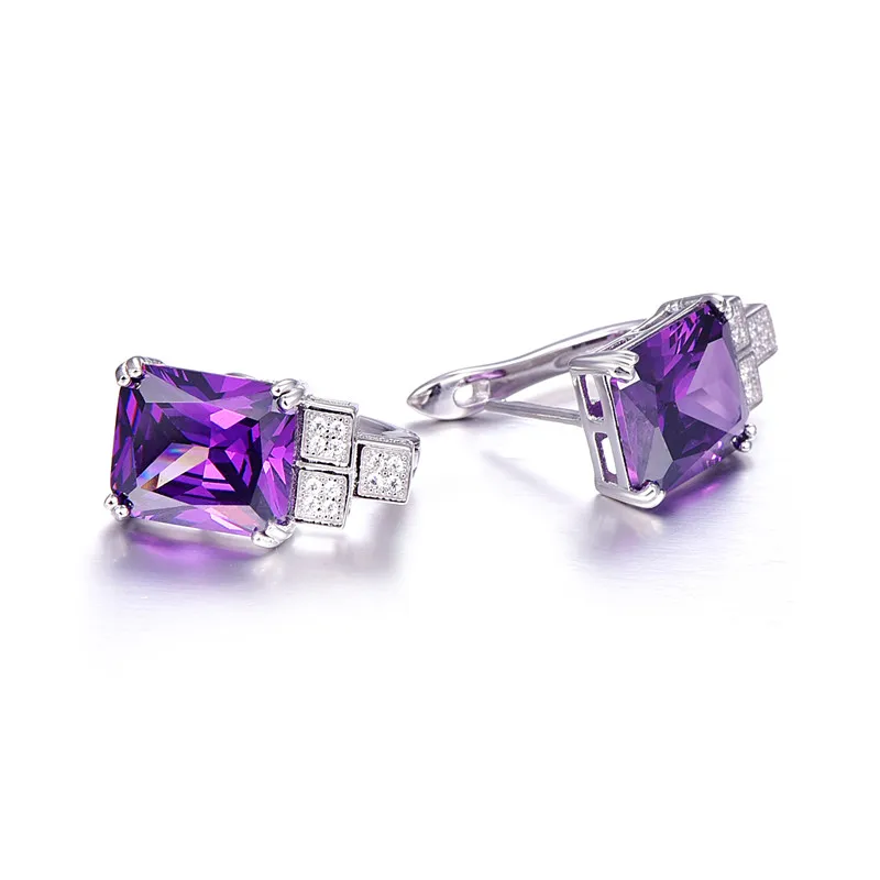 Основной камень аметист Геометрический камень Размер основного камня 10*12 мм Вес основного камня 19,6 ct/2шт Огранка основного камня изумруд Четкость камня AAA Цвет камня фиолетовый Четкость камня vvs