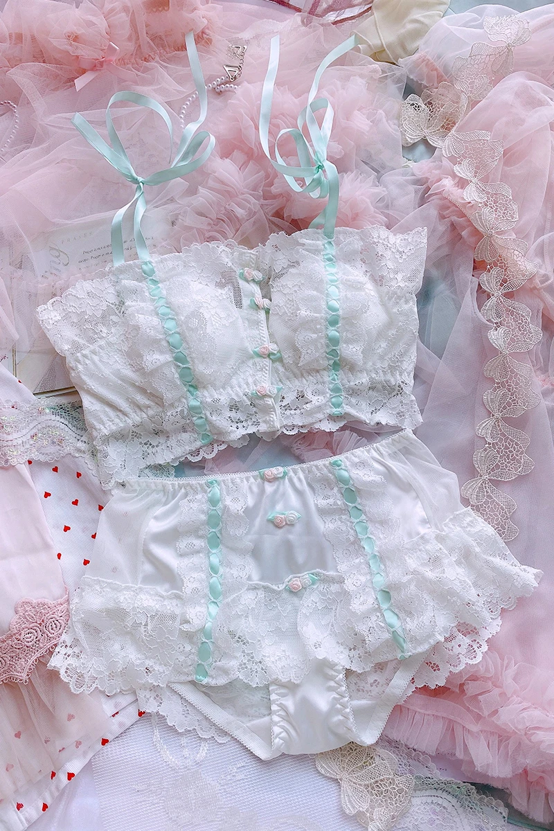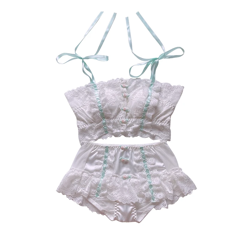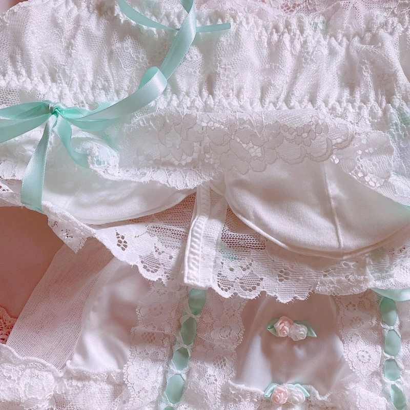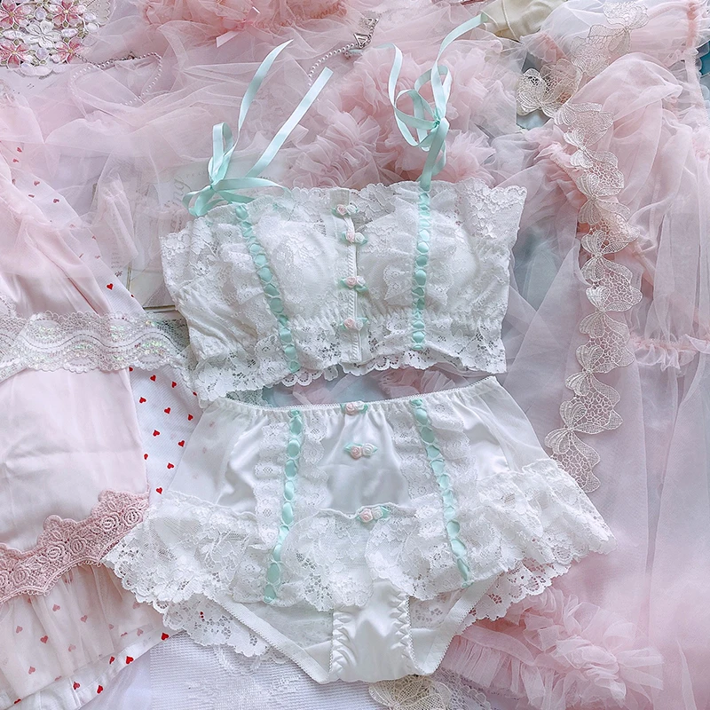 Бюстгальтер и трусики без косточек в японском стиле Лолита, французское винтажное кружевное женское сексуальное нижнее белье, Свадебный белый комплект нижнего белья, Косплей Пижама