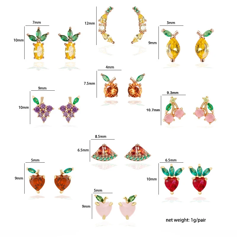 Антиаллергенные позолоченные шпильки S925 с цирконием, 18 карат, модные Кристаллы, ананас, банан, персик, яблоко, лимон, серьги-гвоздики в форме фруктов