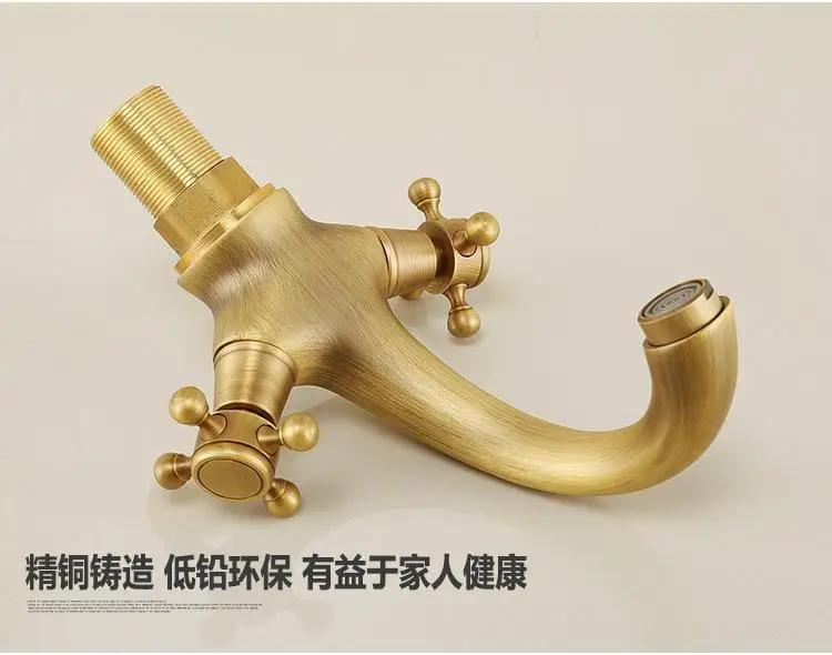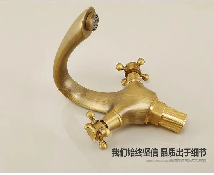 Смеситель для ванной комнаты из латуни и бронзы, античный кухонный кран с двойной ручкой