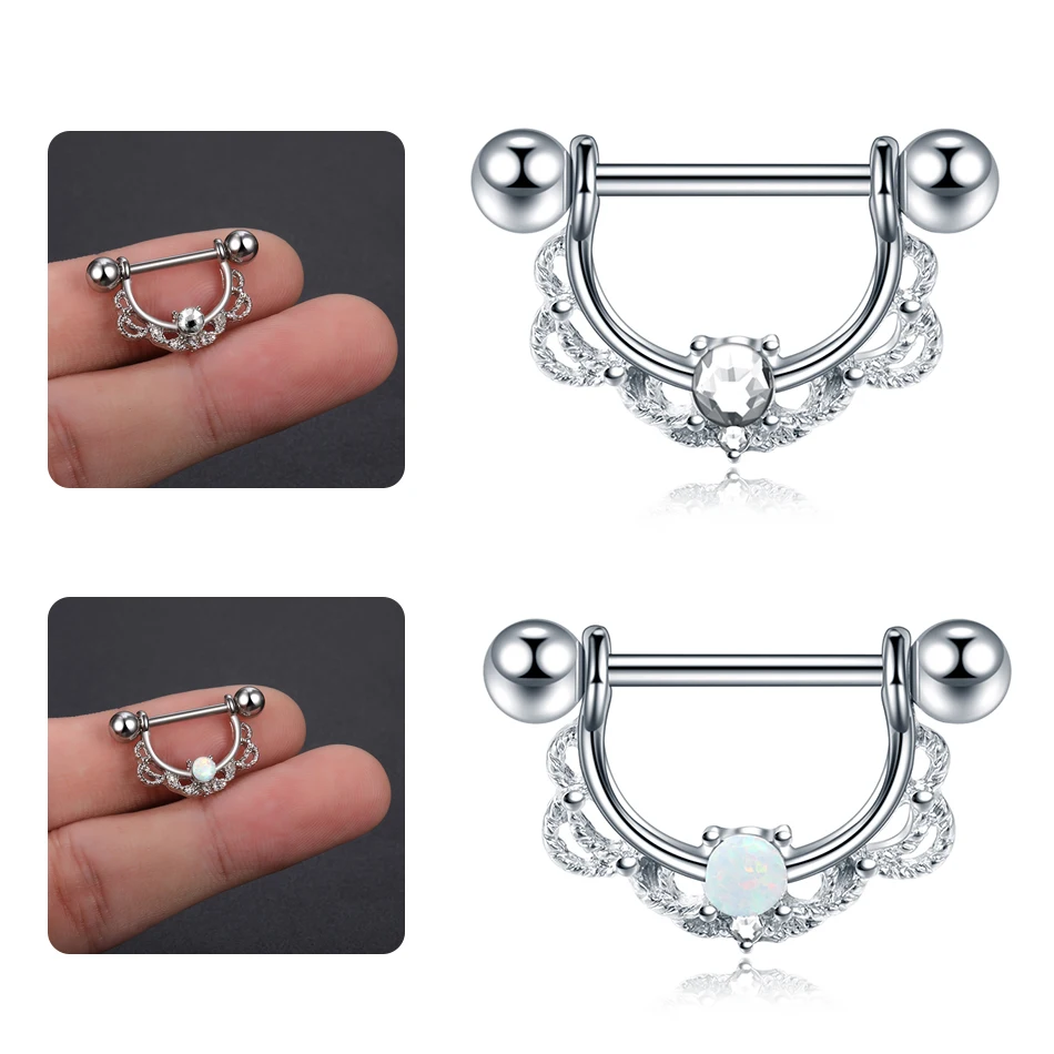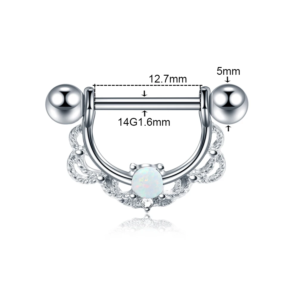 Пирсинг для сосков из стали с опалом, пирсинг для сосков, 14 г, юве...
