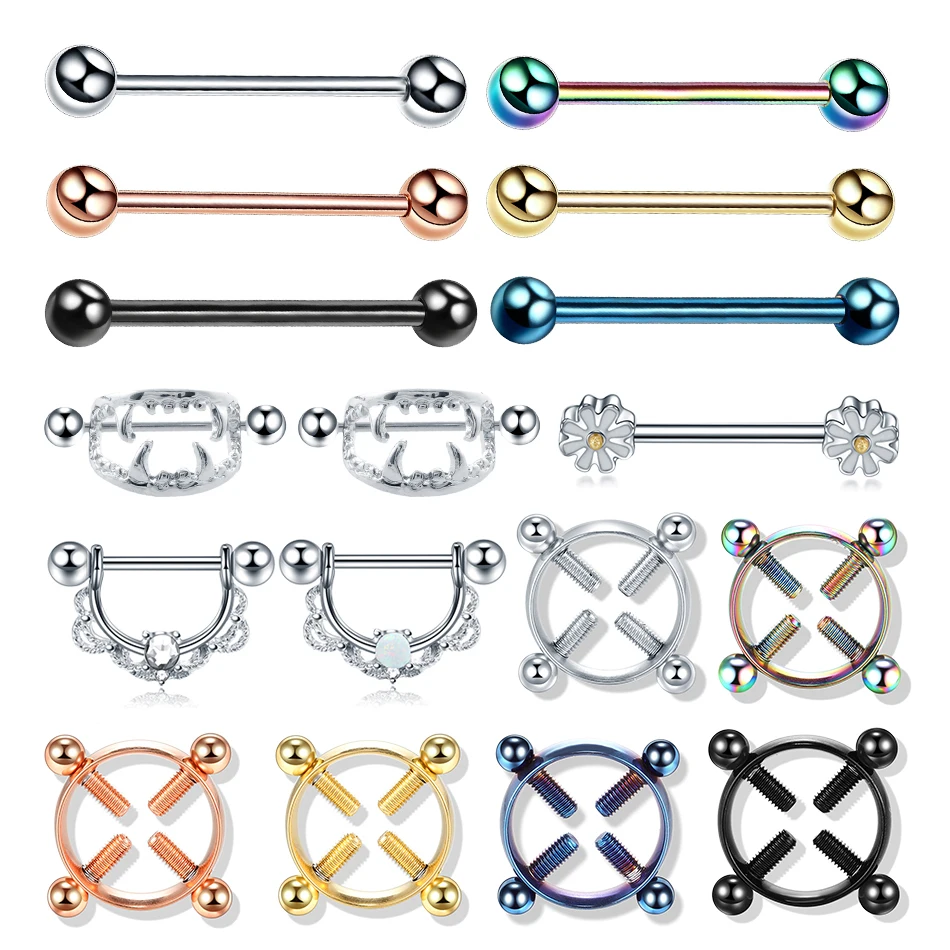 Пирсинг для сосков, штанга из стали, 14 г, украшения для пирсинга, очаровательные искусственные