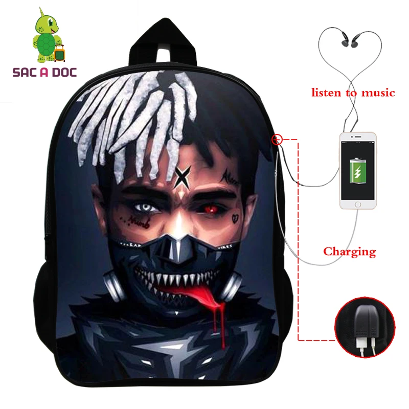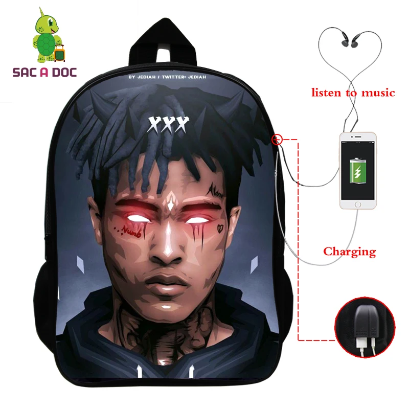 Рюкзак мужскойженский XXXTentacion, для хип-хопа, с Usb-разъемом