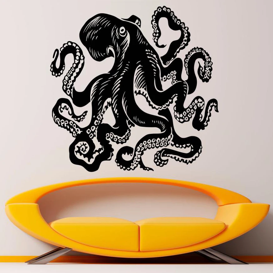 Виниловая наклейка Осьминог C290, наклейка на стену, с рисунком в виде щупальцев, для океана, морской стены, Декор для ванной комнаты