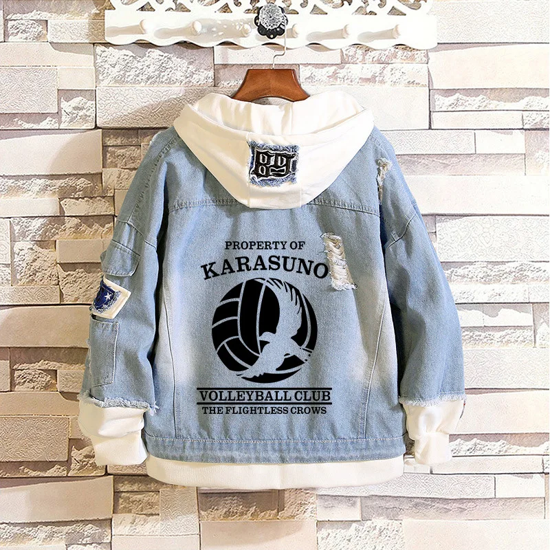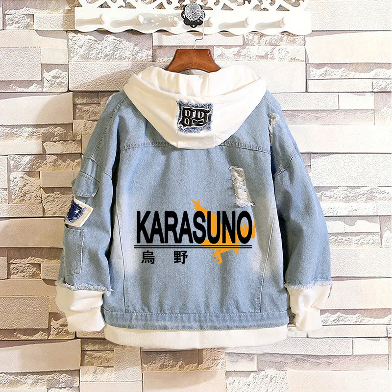Кошмарным! Джинсовая куртка Karasuno волейбольный клуб Косплей пальто весна осень рваные с капюшоном свитер Hinata Shoyo костюм верхняя одежда