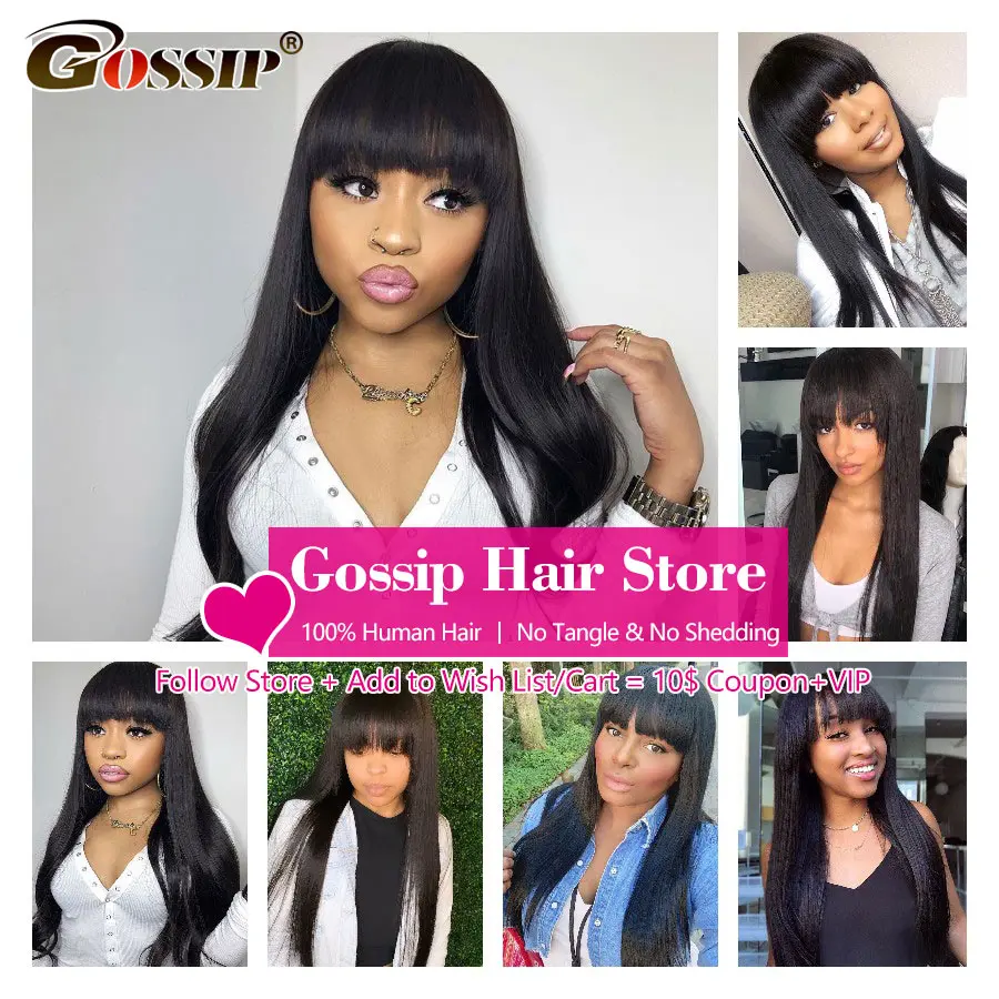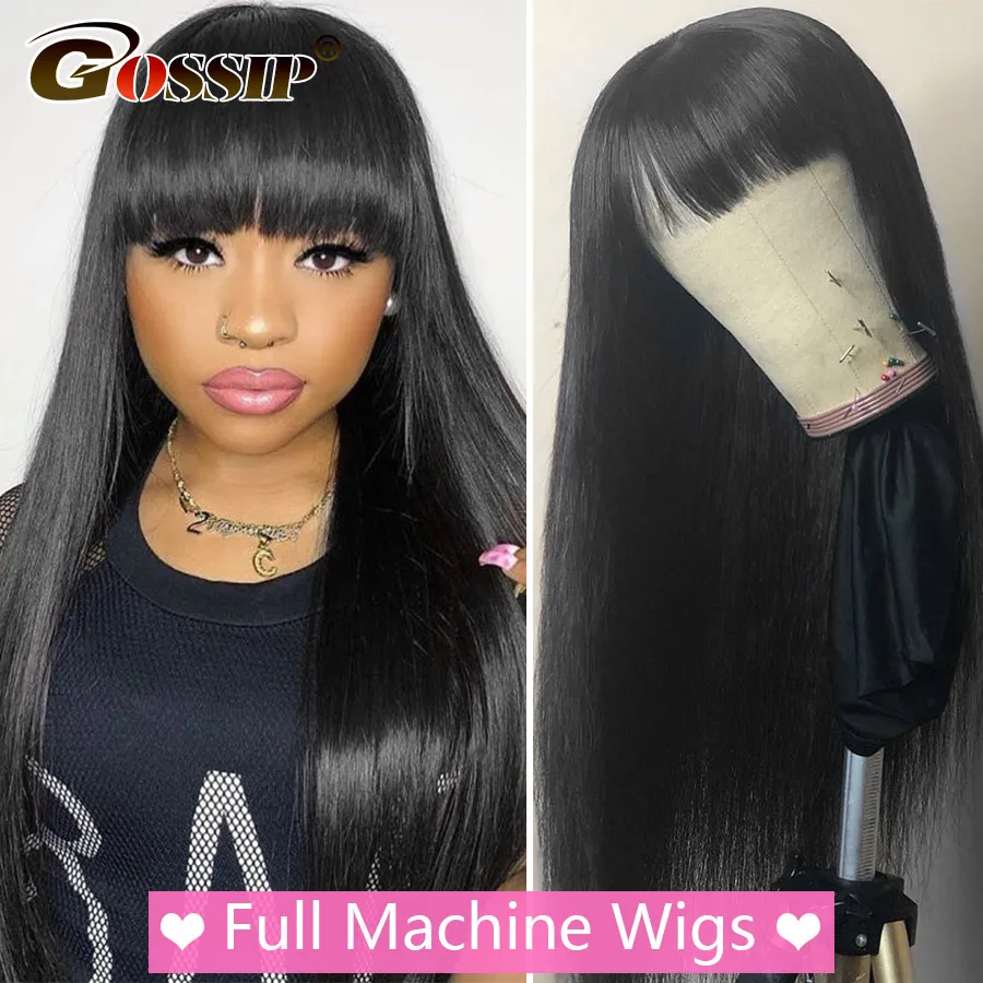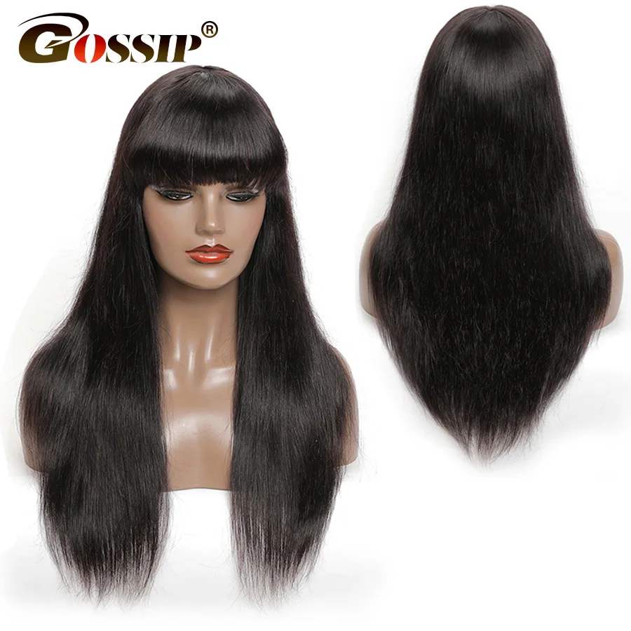 Прямые парики из натуральных волос Gossip с челкой для чернокожих женщин, бразильский парик с челкой, парик с челкой