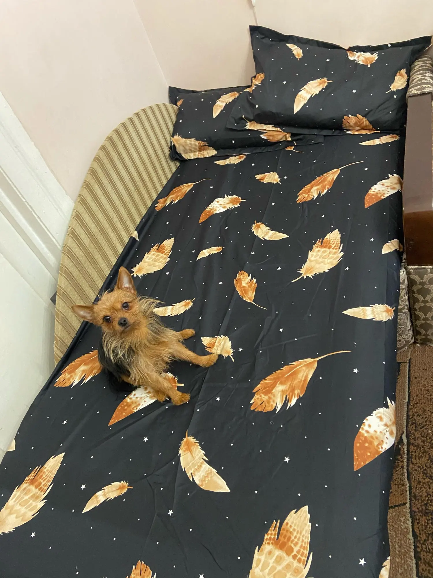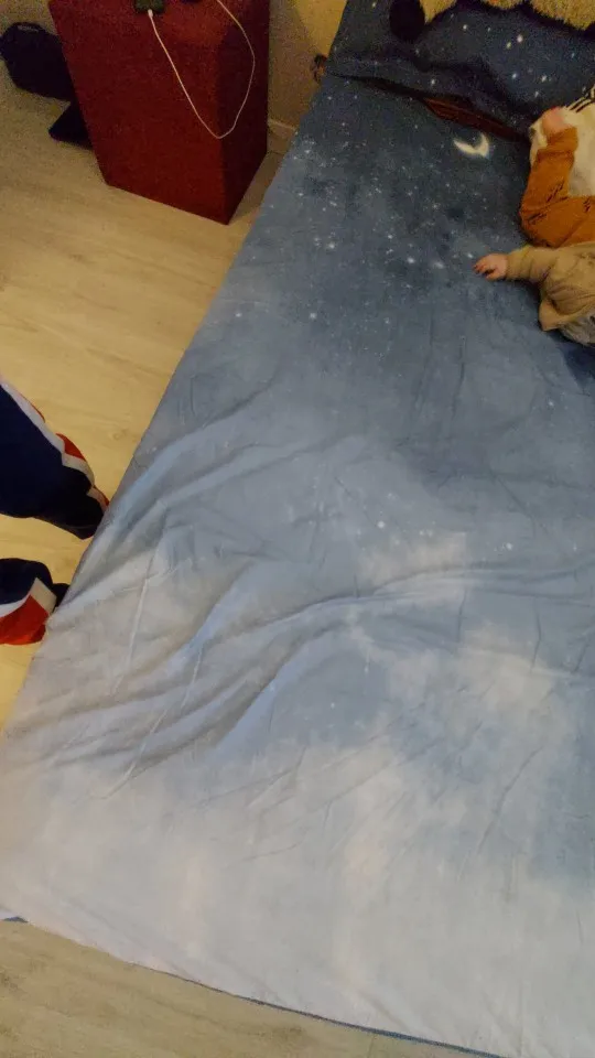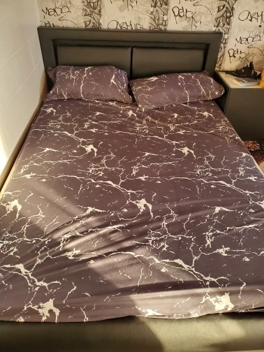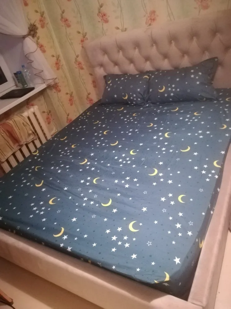 Хороший комплект - простыня на резинке и две наволочки. Красивый дизайн на космическую тему. Размеру соответствует. Доставка не быстрая, к сожалению.