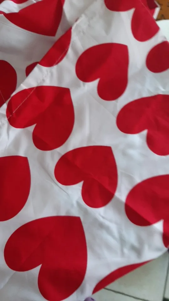 По правде, очень мило, и мне нравится материал, фон розовый, а сердечки большие и красные, в основном я думал, что фон белый, но это очень короткий розовый, очень мило. Я рекомендую их.