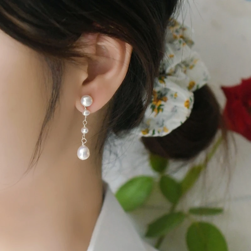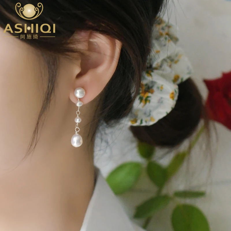 ASHIQI 925 пробы Серебряные длинные серьги-капли для женщин натуральный пресноводный жемчуг ювелирные изделия в подарок