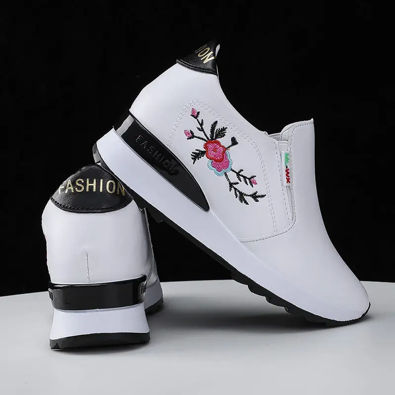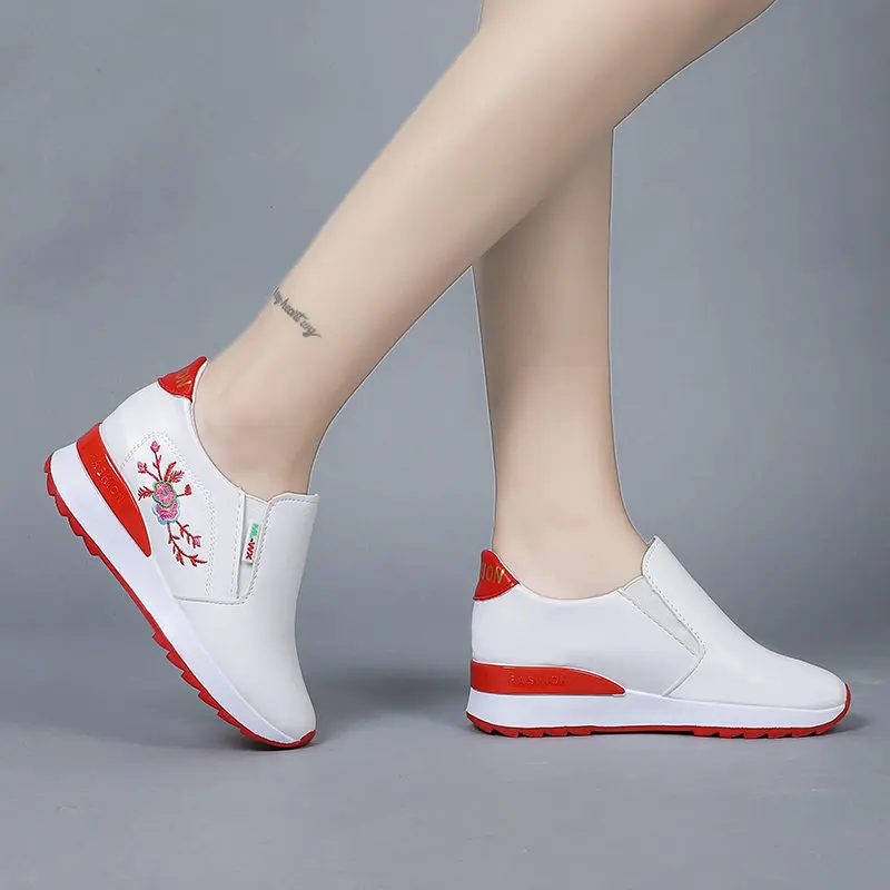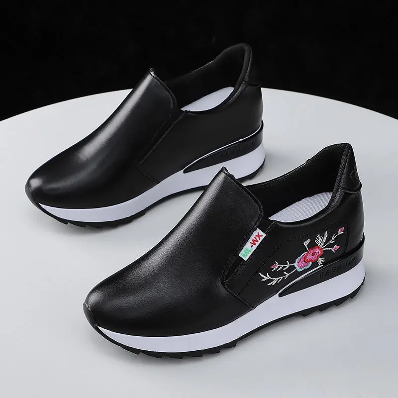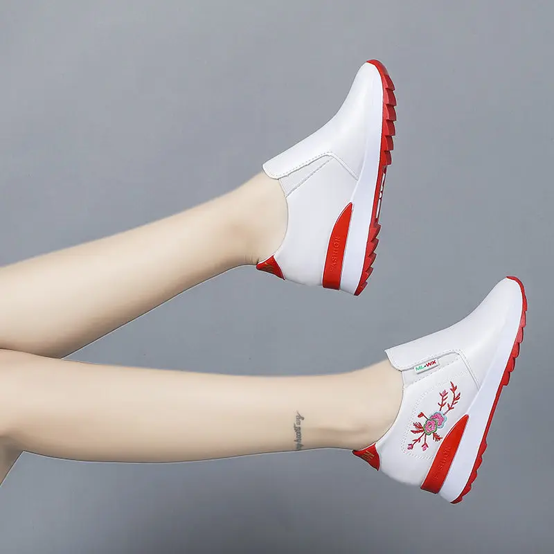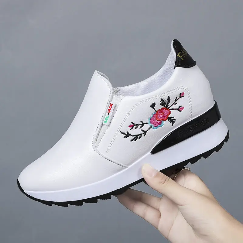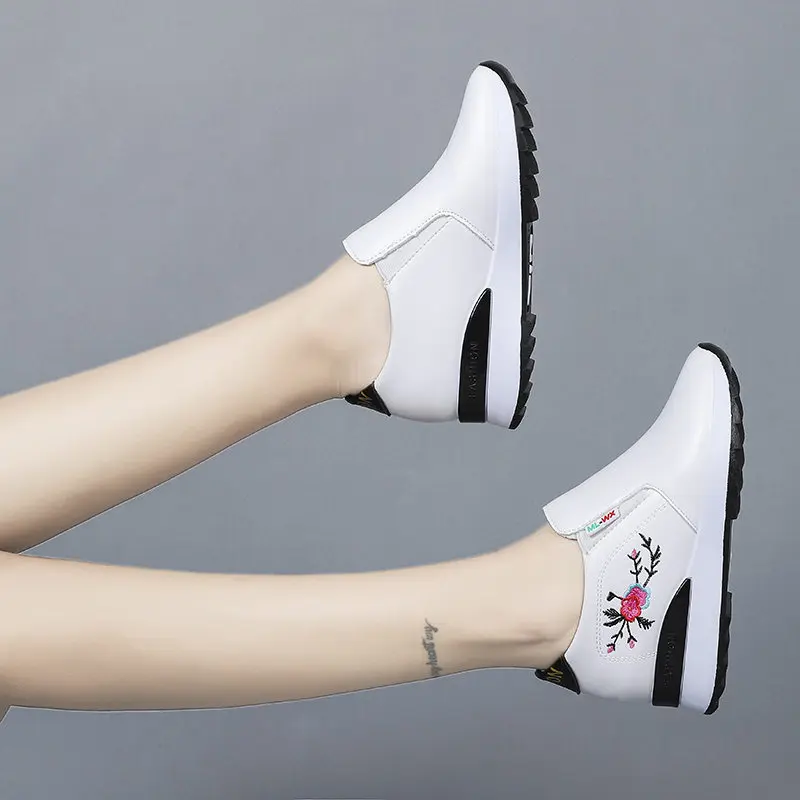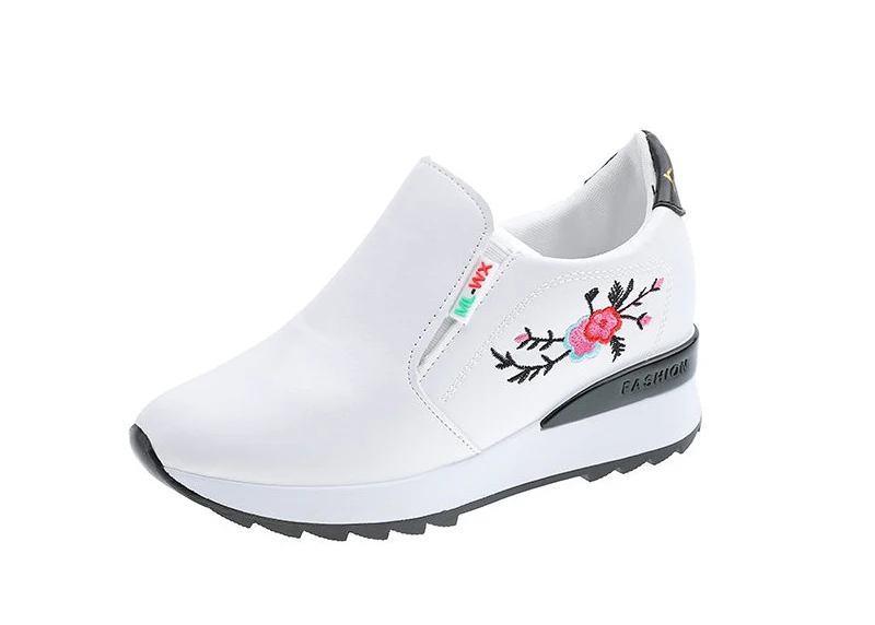 Женская Повседневная обувь; Сезон осень; Лоферы без шнуровки с цветочным узором; Смешанные цвета; Водонепроницаемая Обувь, увеличивающая рост; Белые кроссовки; tenis feminino