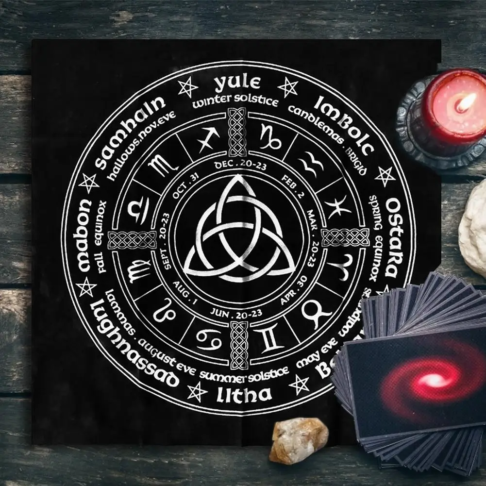 Triquetra языческое колесо года скатерть для карт Таро черная ткань для настольных игр