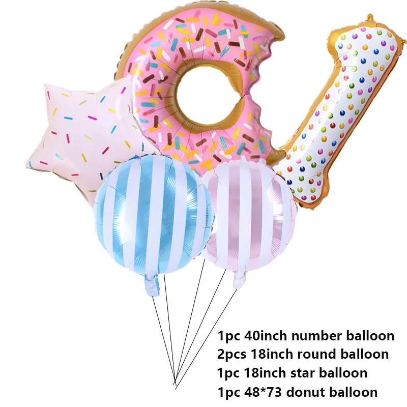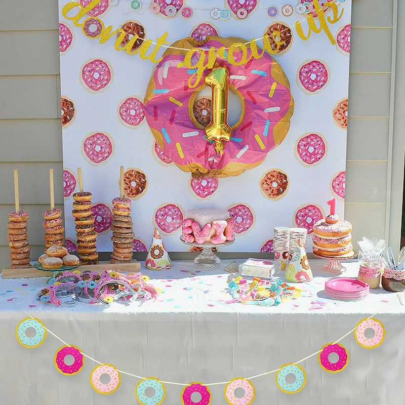 Пончик вечерние столовые приборы одноразовая бумажная салфетка под тарелку кружку пончик растут воздушные шары детский душ один год День Рождения вечерние принадлежности