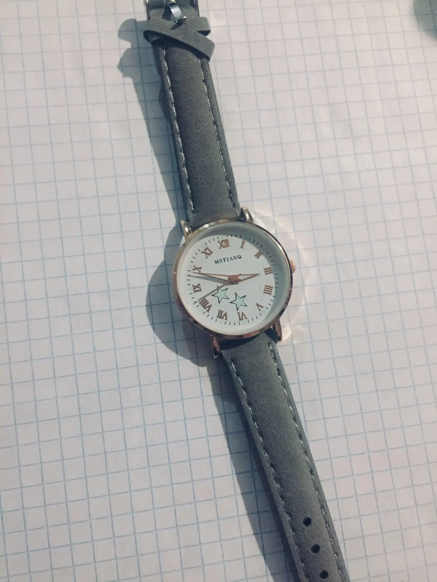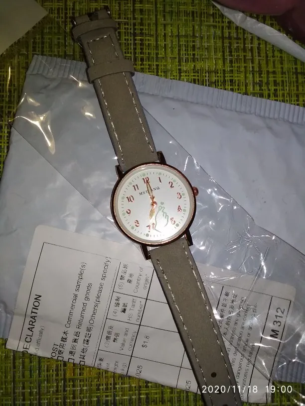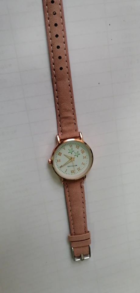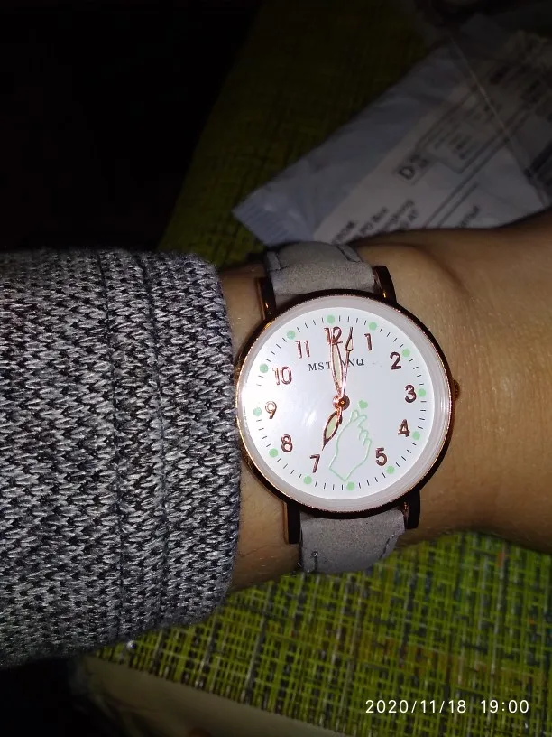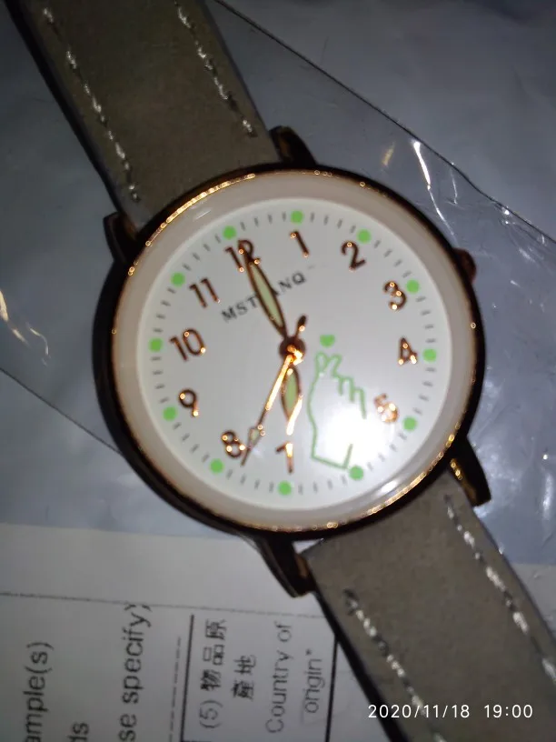 Шло до Минска 3 месяца. Лежали в обычном пакетике, с тонкой пупыркой. Сами часы сделаны аккуратно, но они маленькие. На руке смотрятся по детски, у меня рука тонкая, но насить буду около запястья. Ремешок сделан сверху под замшу. Светятся в темноте, но не долго мин 30, и то если вы перед этим на них просветите фонариком или у лампочки подержите.